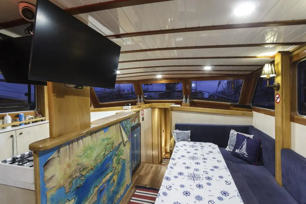 At the heart of Okay II's appeal is its array of onboard entertainment and leisure options. Guests can unwind with the onboard Wi-Fi, TV, and music system, or dive into adventure with the 20 hp service boat, paddleboard, canoe, and snorkeling and fishing equipment. These amenities ensure that every moment aboard Okay II is filled with enjoyment and relaxation.