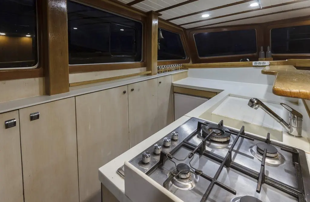 Okay II is powered by a 240 hp Iveco engine, ensuring smooth sailing across the azure waters of the Aegean. While specific cruising speeds and fuel capacities are curated to enhance the journey, Okay II's advanced navigation equipment, including radar, depth sounder, VHF Radio, and GPS, underscores a commitment to safety and seamless exploration.