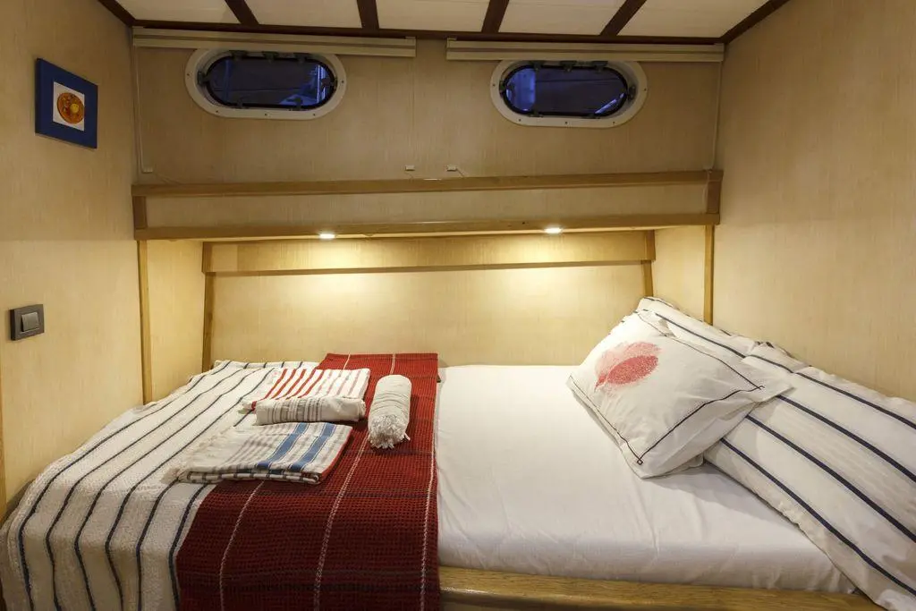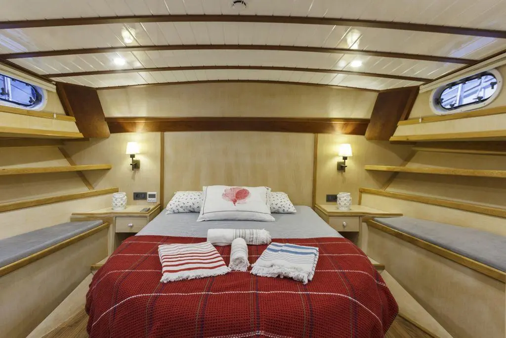 The tradition of gulet cruising in Turkey is a testament to the country's deep maritime heritage, offering a blend of exploration, relaxation, and unparalleled service. Okay II, with its length of 18.50 meters and beam of 5 meters, exemplifies this heritage, providing spacious and elegant accommodations for up to 8 guests. Designed with an eye for detail, Okay II boasts 2 master cabins and 2 double cabins, each equipped with air conditioning, en-suite bathrooms with shower boxes, ensuring privacy and comfort for all aboard.