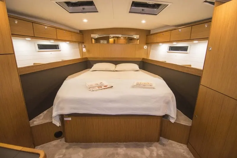 Bavaria Yachts are celebrated for their reliability, performance, and exquisite design, and Ozgurum is a testament to this legacy. With a length of 17 meters and a beam of 4.50 meters, this yacht promises stability, spaciousness, and grace on the water. Powered by a 110 hp engine and equipped with an 8 kW generator, Ozgurum is designed to glide through the waters at a cruising speed of 16 knots, ensuring a sailing experience that is as thrilling as it is serene.