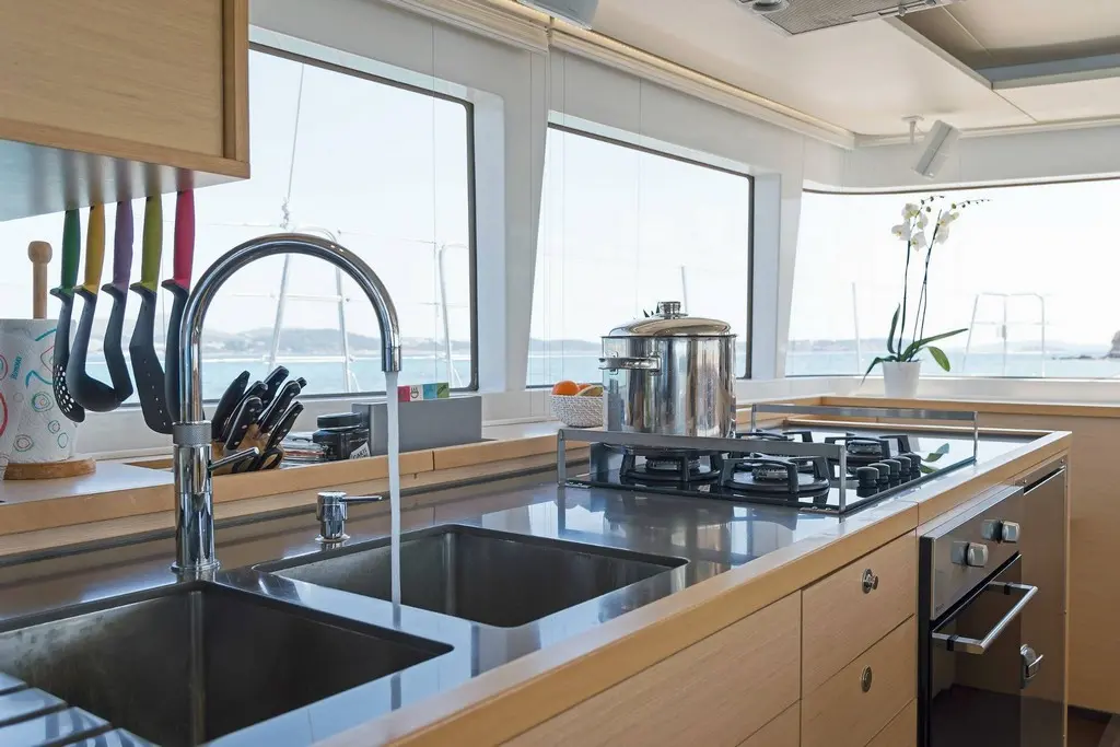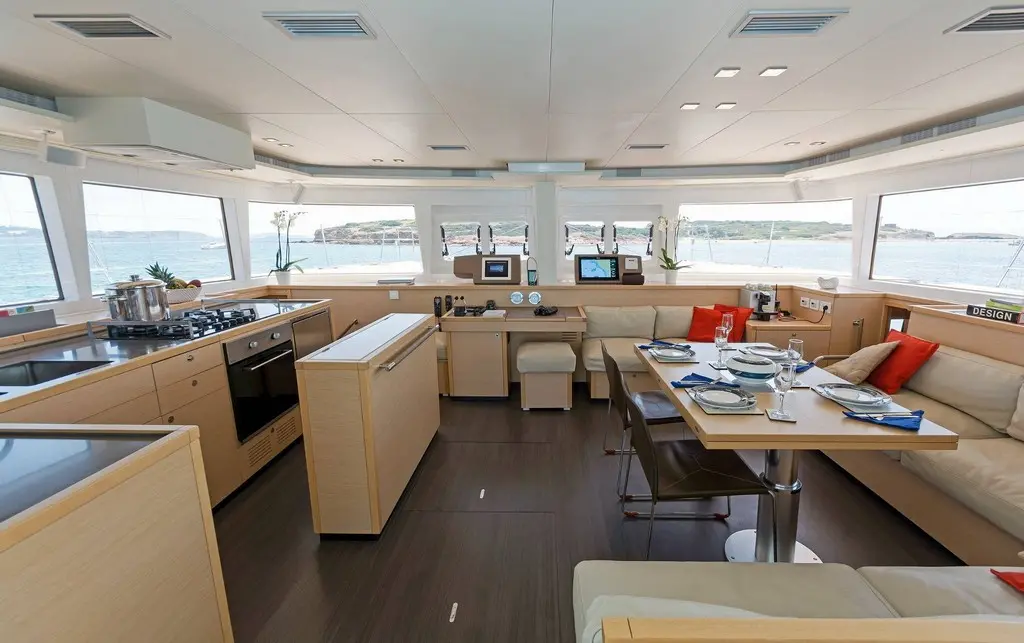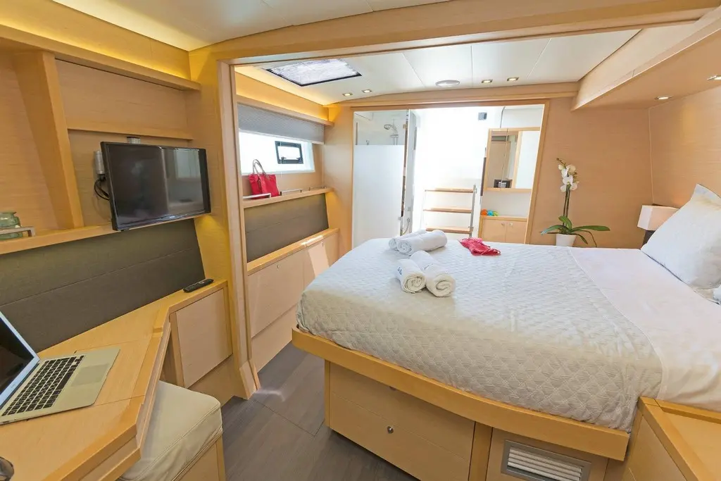 The catamaran's indoor restaurant and entertainment amenities, including TVs in the salon and cabins, ensure that your dining and leisure moments are as exquisite as the landscapes you explore. Sea Bliss is a haven where culinary delights and entertainment meet the elegance of sailing.