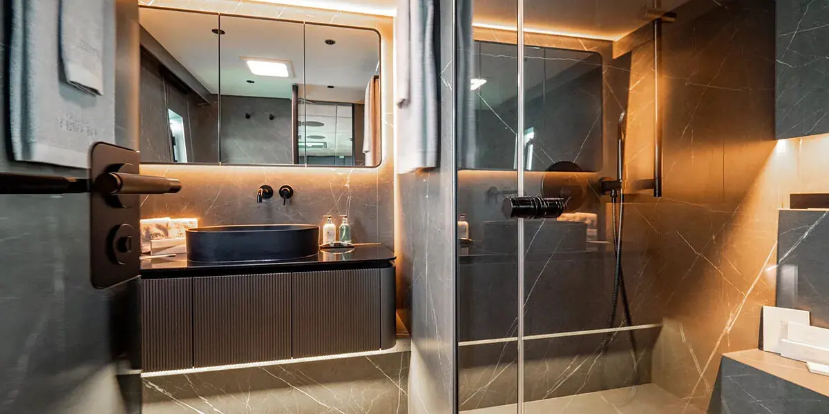 Each cabin on the Sunreef 80 comes with its own ensuite bathroom, ensuring privacy and convenience for all guests. The bathrooms are equipped with high-end fixtures, spacious showers, and all the amenities one would expect from a luxury yacht.