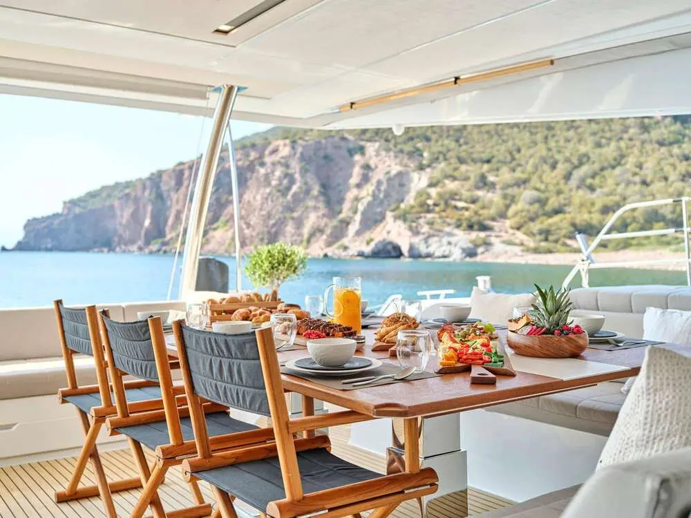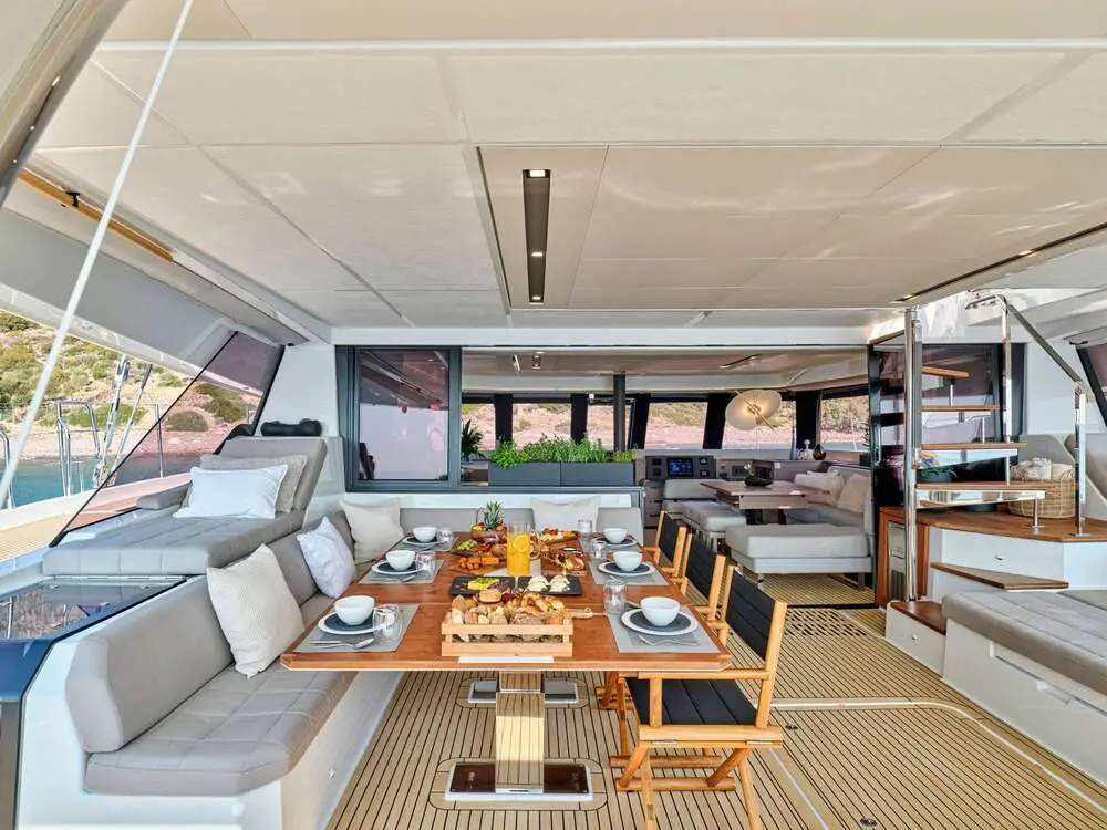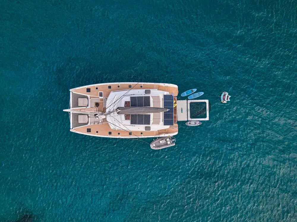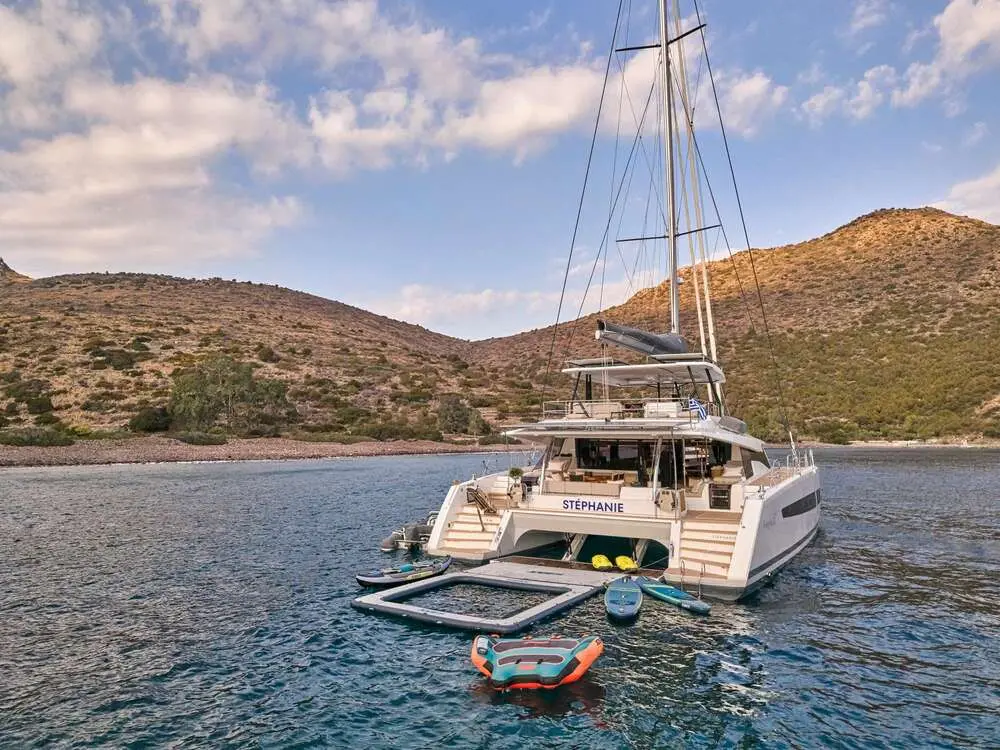 The Alegria 67 Stephanie is a stunning 2024 model luxury catamaran, designed for a smooth, stable, and stylish sailing experience. With a spacious deck, high-end amenities, and a dedicated crew, this yacht is perfect for an unforgettable journey across the beautiful Greek islands.