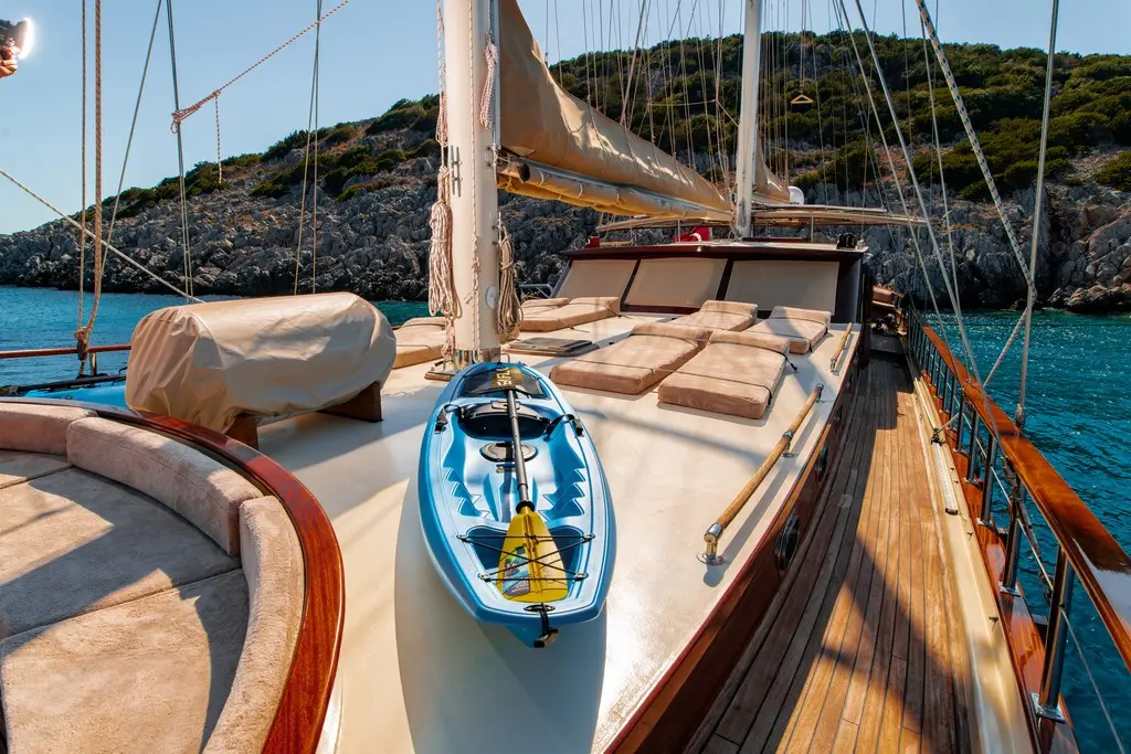 Constructed in 2007 and meticulously refitted in 2010 and 2021, Sunrise II showcases the artistry of gulet design. Measuring 24 meters in length, her broad beam and deep draft ensure stability and spaciousness, offering a sailing experience that is both authentic and luxurious.