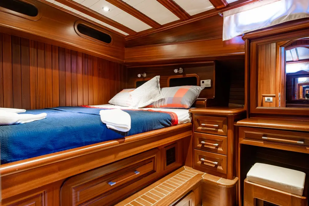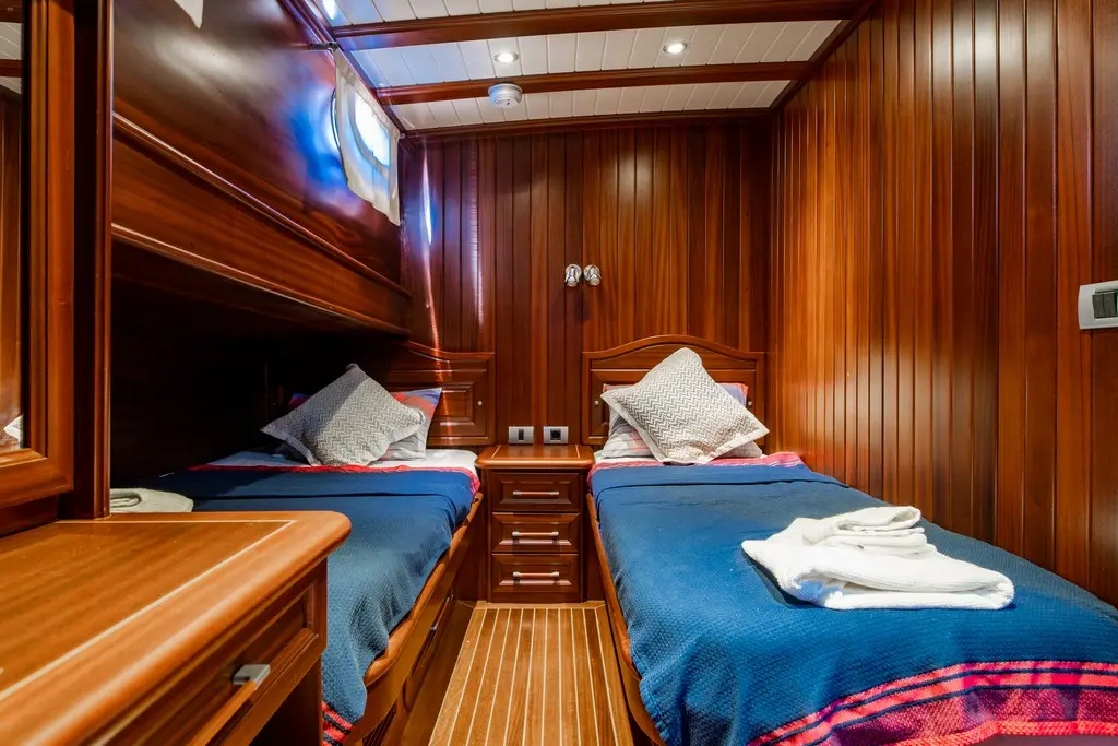 Offering accommodation for up to 8 guests across three double and one twin cabins, Sunrise II provides a sanctuary of tranquility and style. Each cabin is thoughtfully appointed, promising serene nights amidst the gentle rocking of the waves.