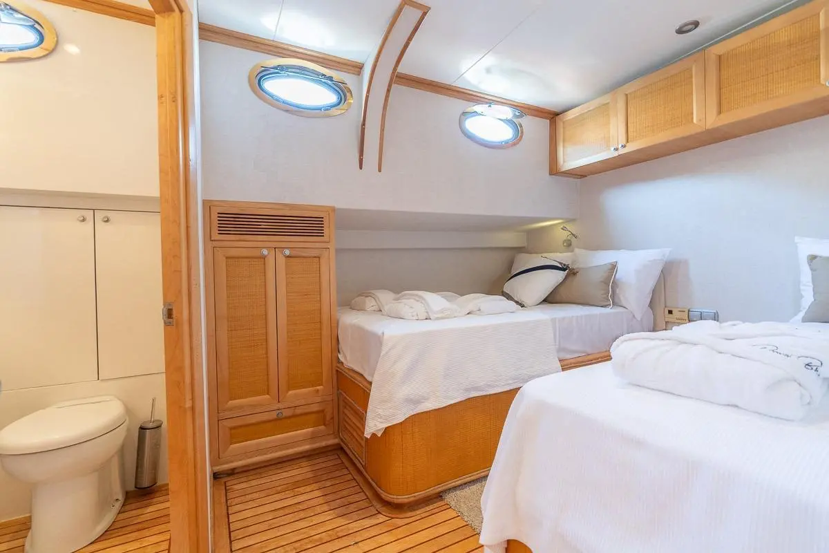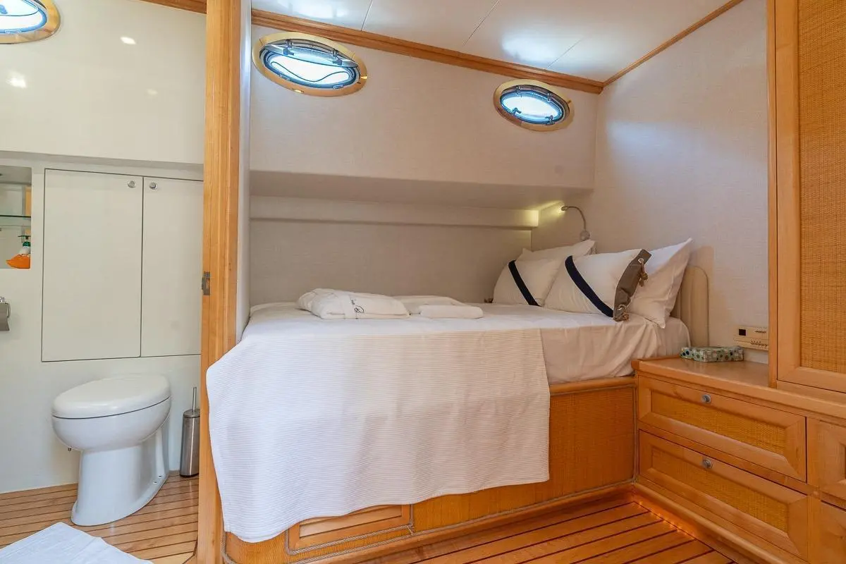 Gulet The Royal Blue offers elegant and thoughtfully designed cabins suitable for diverse groups. The décor blends modern standards with warm maritime touches, keeping the interior inviting and comfortable. The yacht hosts 8 guests, making it perfect for intimate charters. All cabins and common areas are fully air-conditioned, and the bathrooms are modern and well-equipped.