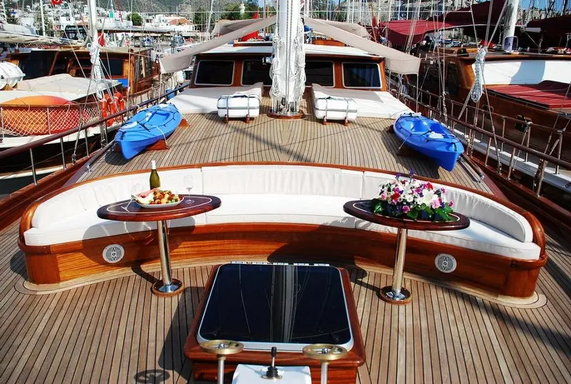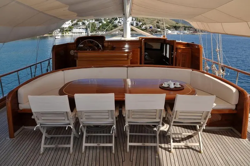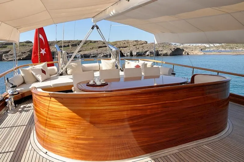 L'Orient's interior is a masterpiece of design, blending traditional craftsmanship with contemporary luxury. The exterior spaces are equally captivating, offering ample room for sunbathing, dining, and taking in the mesmerizing views of the Turkish coastline.