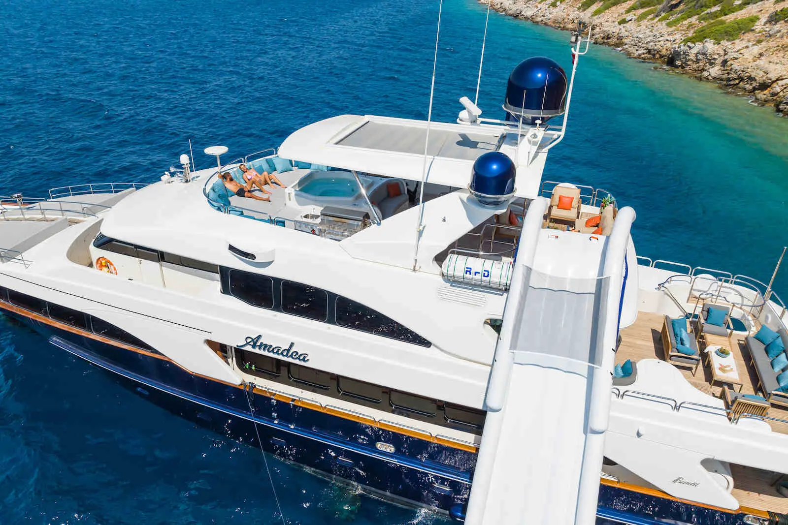 Powered by two robust CAT engines, "Amadea" cruises at a steady 12 knots, delivering a smooth and enjoyable ride while exploring beautiful coastlines and secluded bays.