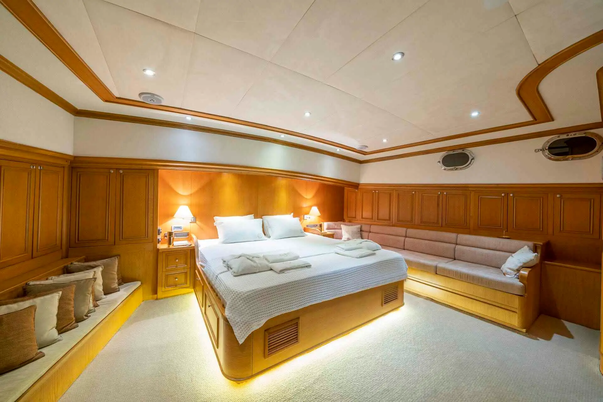 Babylon’s accommodations provide a perfect blend of luxury and comfort. With one master, one VIP, and three double cabins, each equipped with en-suite bathrooms and full air conditioning, Babylon promises a restful and opulent stay. The attention to detail in the cabin design reflects Babylon’s commitment to providing a serene and luxurious environment.