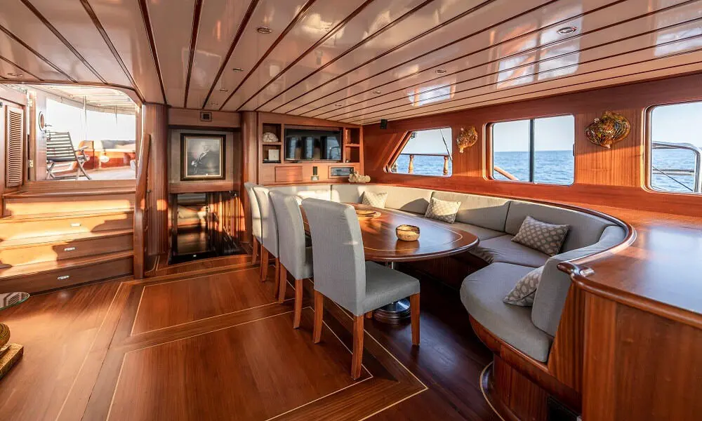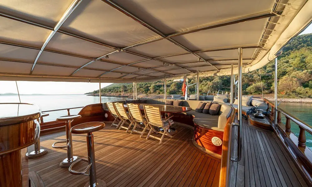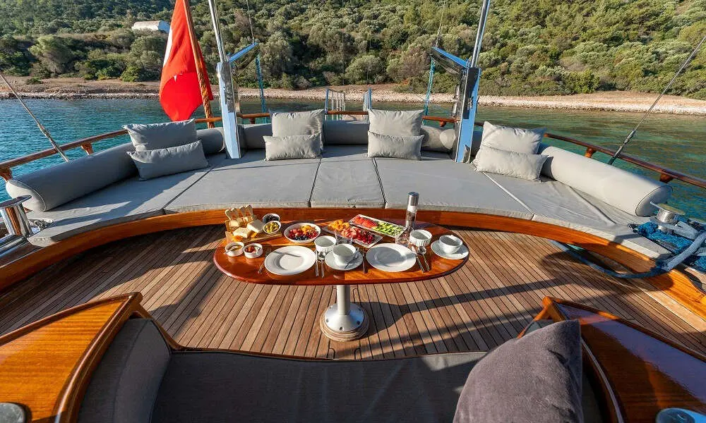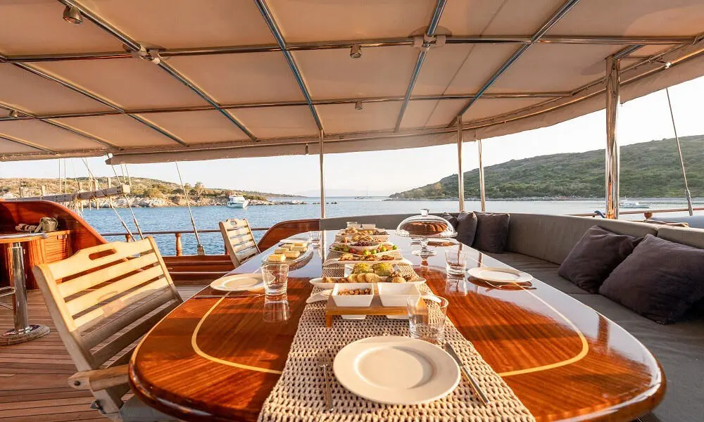 Aboard Bedia Sultan, dining is a celebration of Mediterranean and Turkish cuisines, with dishes prepared by a talented chef. Guests can savor the flavors of the region, enhanced by a modern culinary twist, in the beautiful setting of the Aegean Sea.