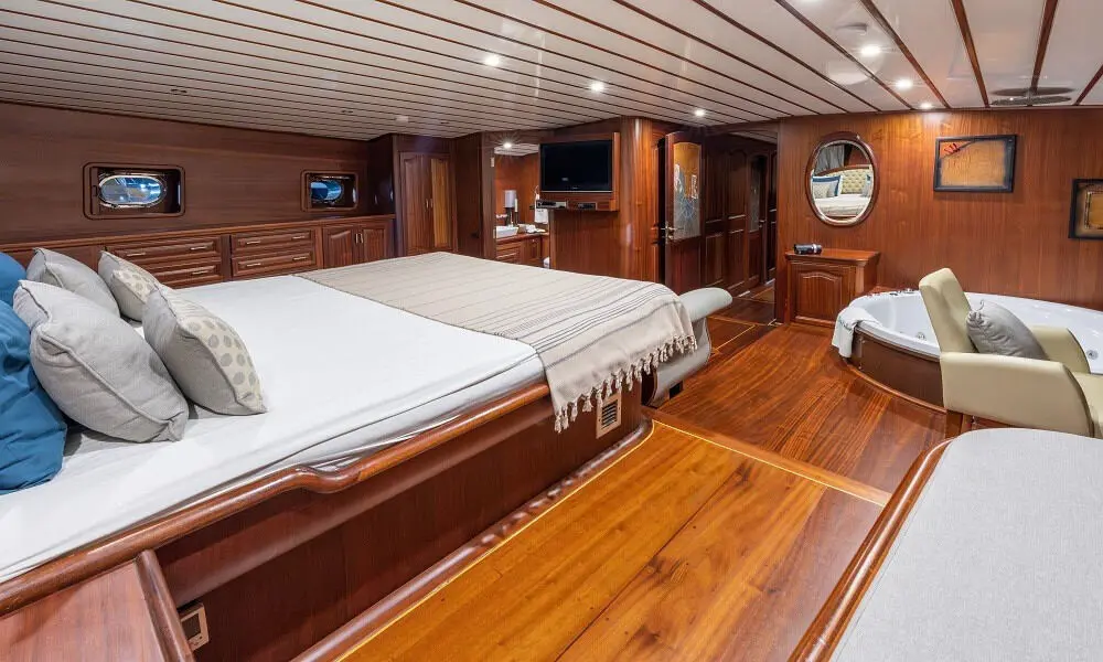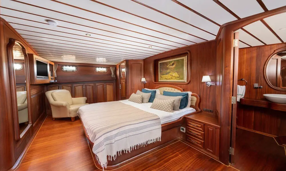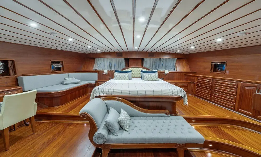 Bedia Sultan boasts lavish accommodations, including two master cabins with jacuzzis and three double cabins, all fitted with modern amenities to ensure your utmost comfort. The attention to detail in the design and furnishings of each cabin reflects Bedia Sultan’s commitment to luxury and guest satisfaction.