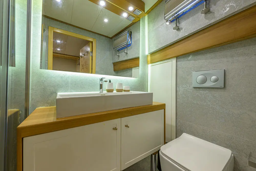 All cabins are fitted with modern bathrooms and toilettes, offering a touch of luxury and comfort. The en-suite facilities ensure guests have the privacy they need. The entire vessel is air-conditioned, ensuring a comfortable environment regardless of the weather conditions outside.