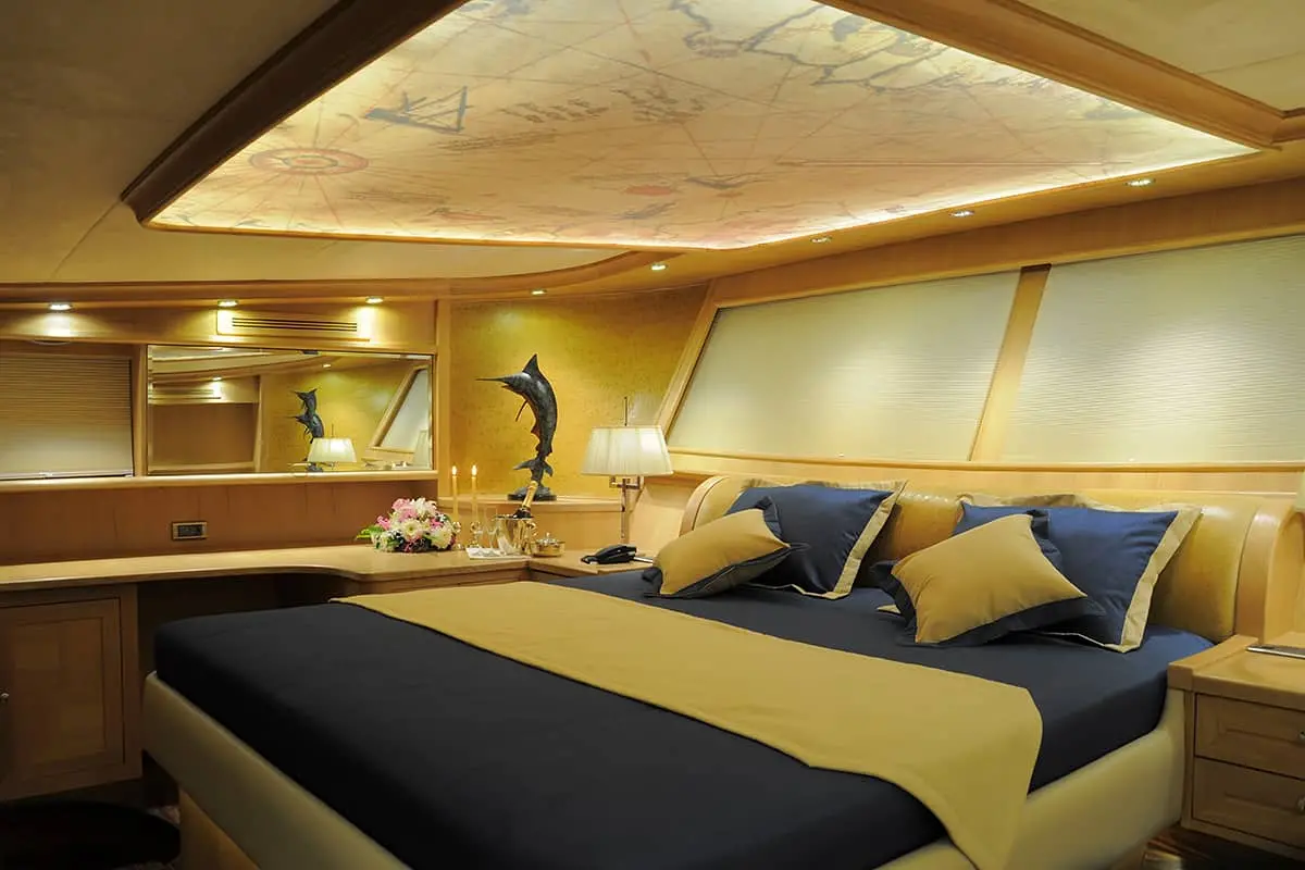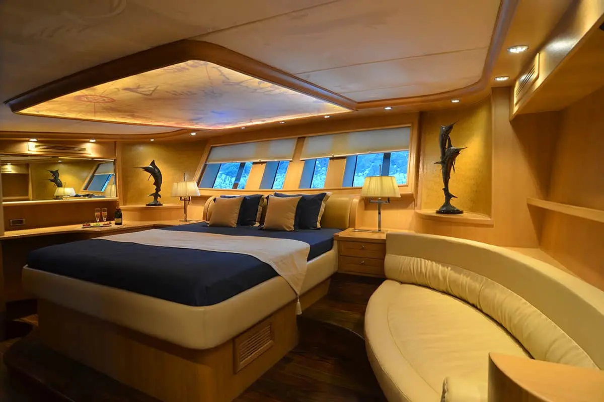 Blue Heaven’s accommodations ensure a stay that is both comfortable and elegant. With two master cabins, two twin cabins, and one single cabin, each equipped with en-suite bathrooms and full air conditioning, Blue Heaven promises a restful and luxurious stay. The inclusion of a jacuzzi adds an extra touch of indulgence, making your time aboard truly special.