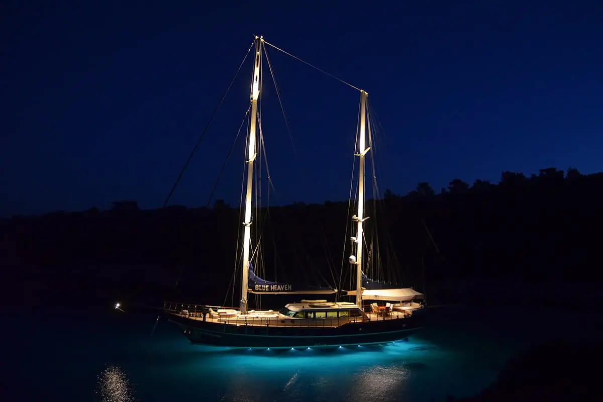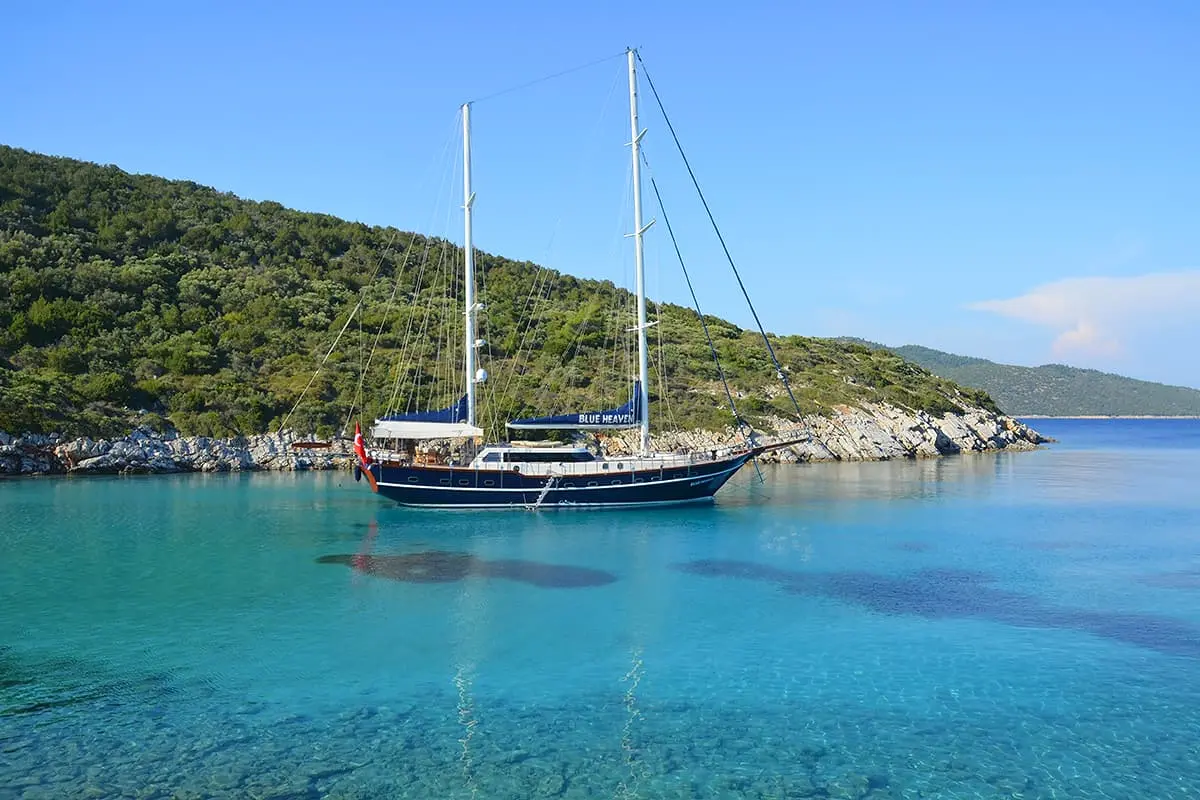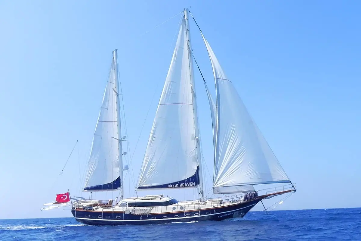 Set sail from Bodrum, Turkey, on the deluxe Blue Heaven Gulet. Enjoy luxurious accommodations, exquisite dining, and a plethora of water activities for an unforgettable sailing experience for up to 9 guests.