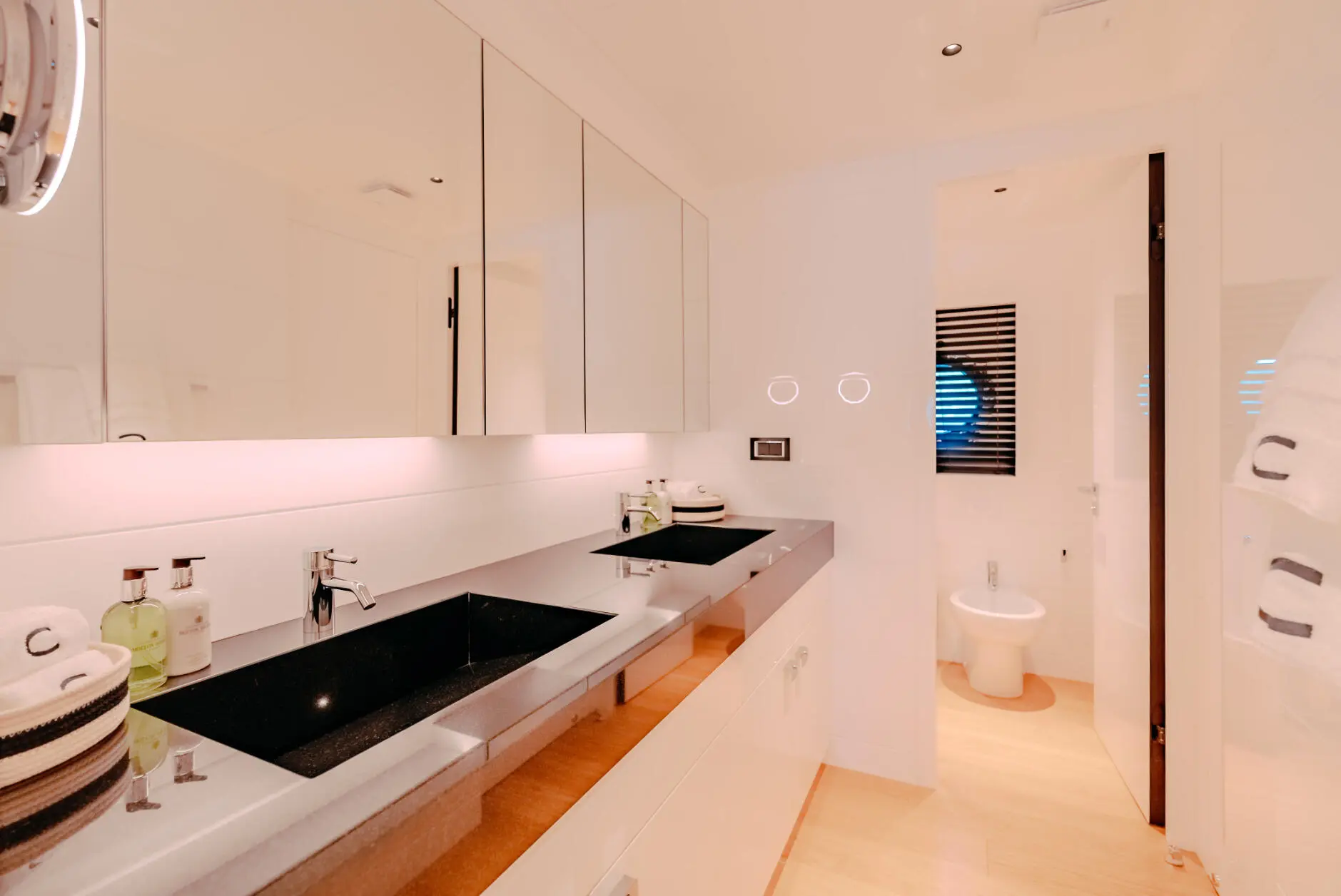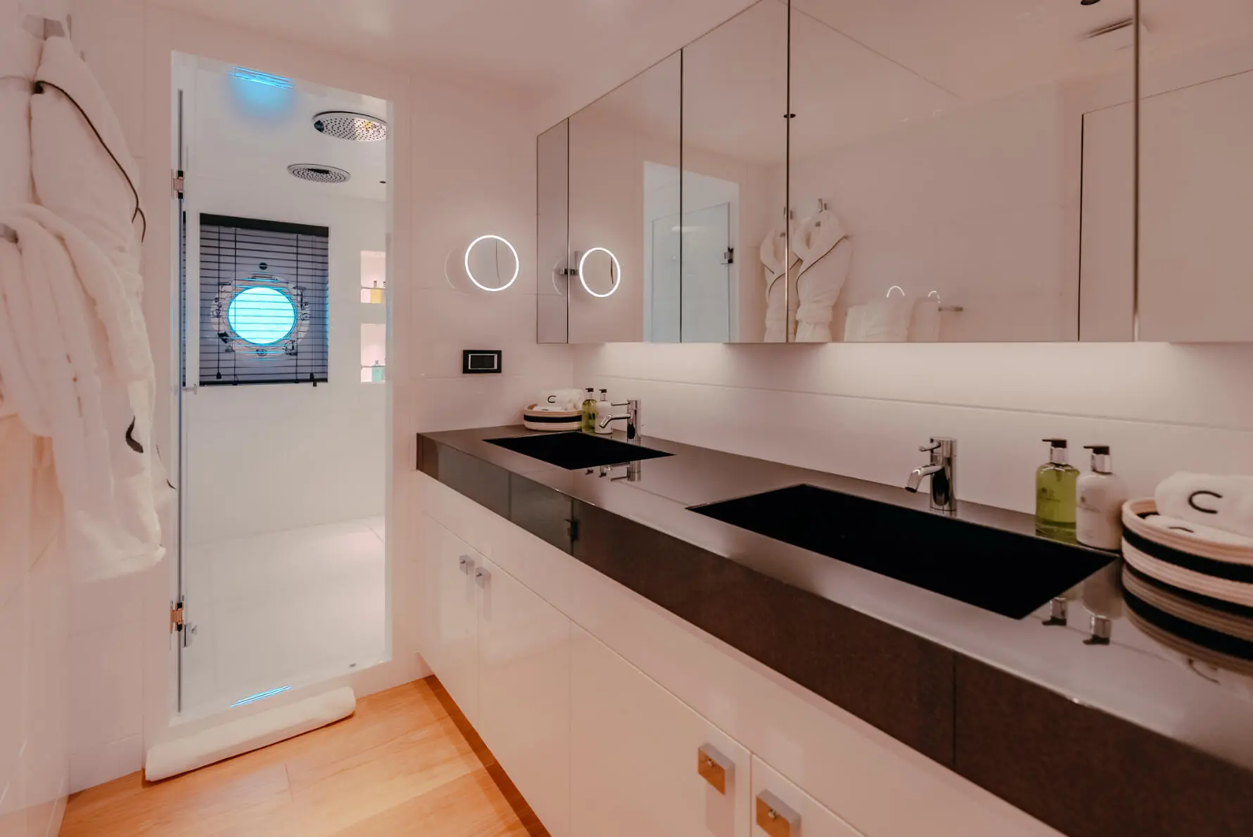 Equipped with 2 x MAN D2862 LE469 engines, the yacht offers excellent performance and reliability. The onboard energy systems include 55 kW + 35 kW Kohler generators, ensuring uninterrupted comfort for all guests.