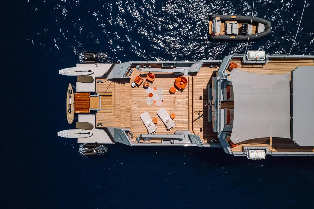Jacuzzi on the foredeck, 2 x E-foil, 2 x See doo spark jet ski, 2 x SUP, 2 x Paddle Polo SUP, Kayak,2 x Wakeboards, 3-4 x Water Ski, 2 x Sea bobs, Williams 565 tender, Snorkelling sets, Fishing equipment, Basketball hoop, Table tennis, Cornhole game, Basic Gym Equipment (Yoga mats, Resistance bands, Dumbbells)