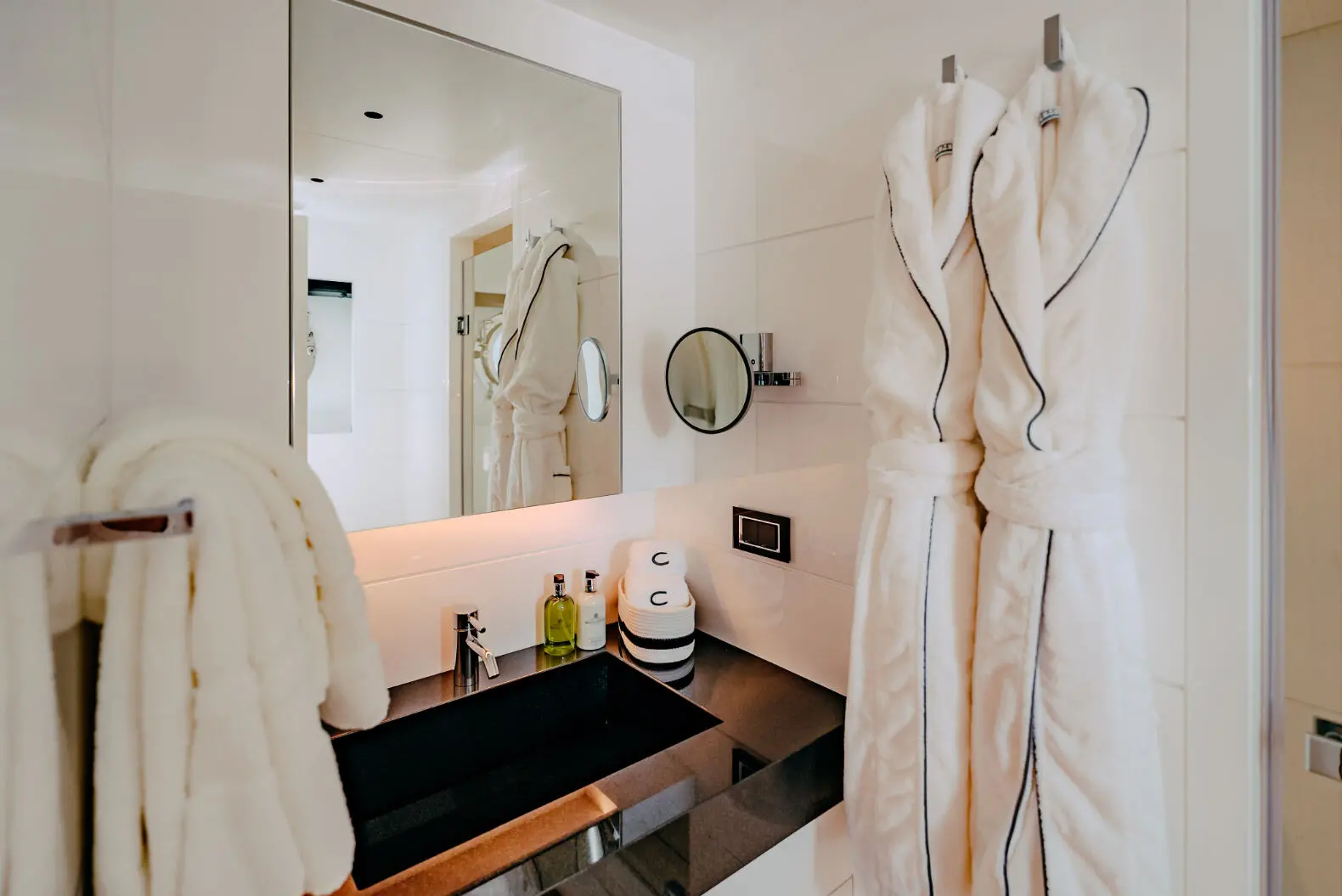With a guest capacity of 10, Motor Yacht Carmen features a beautifully arranged cabin layout that blends luxury with practicality. The yacht includes 3 elegantly designed double cabins. These cabins serve as private havens for restful nights after days full of adventure. Carmen also features 2 convertible twin cabins, making it easy to accommodate different group types—families, couples, or friends. All cabins include ensuite facilities, premium amenities, and well-planned layouts to ensure maximum comfort.
