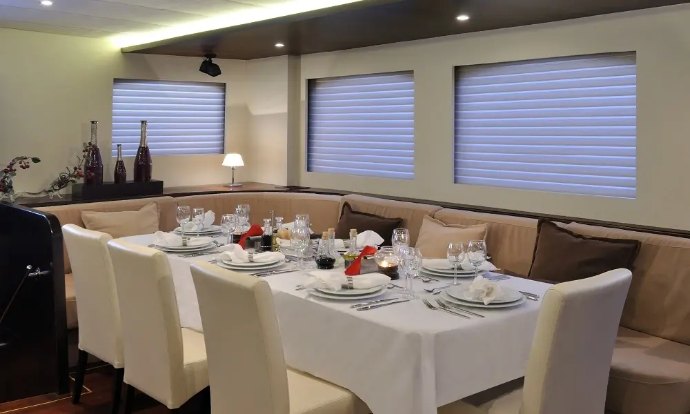 Aboard Casa Dell Arte II, dining is a celebration of Mediterranean and Turkish cuisines, with dishes prepared by a talented chef. Guests can savor the flavors of the region, enhanced by a modern culinary twist, in the beautiful setting of the Aegean Sea.