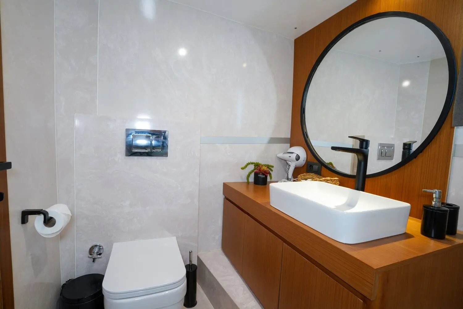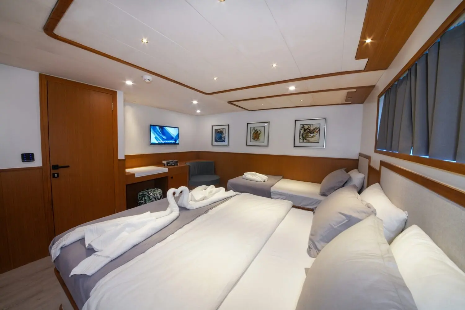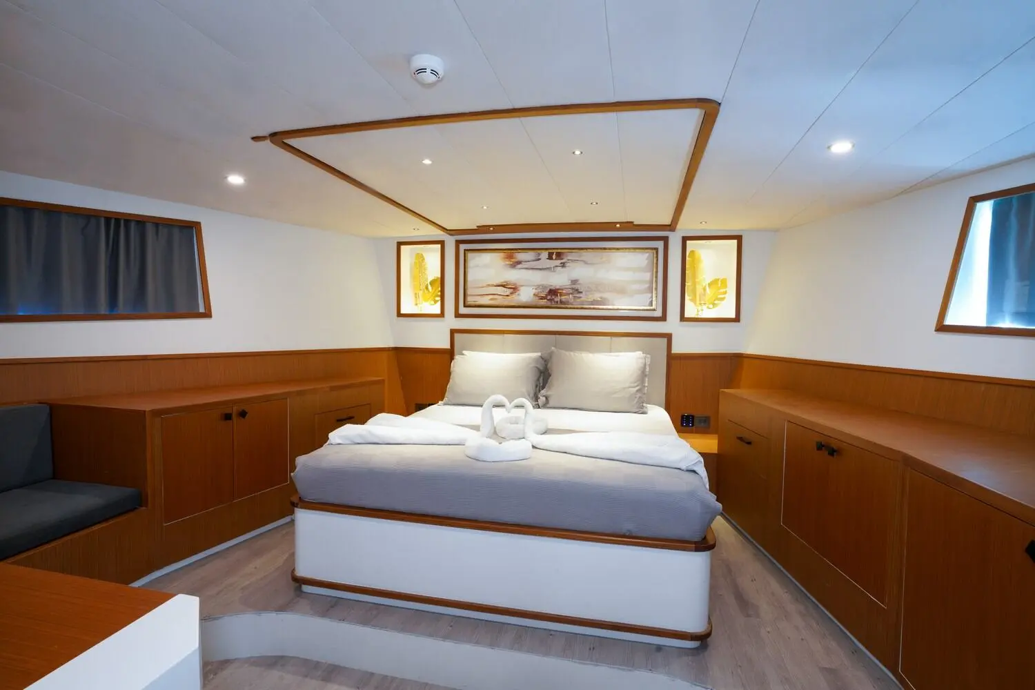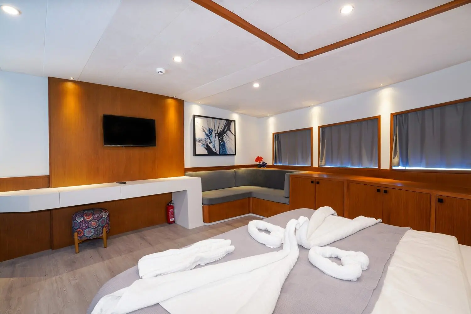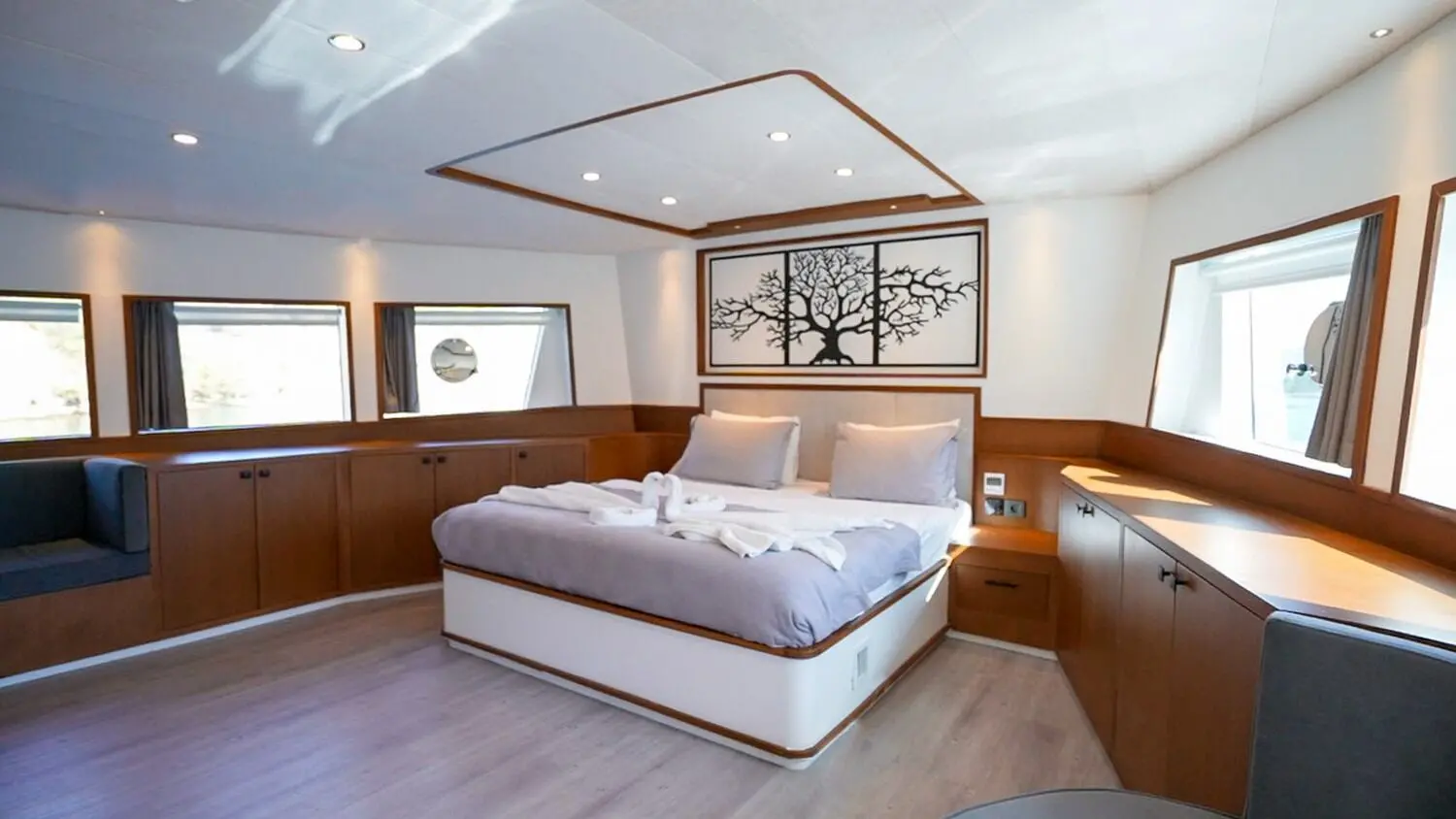 Çınar Yıldızı boasts an exquisite selection of cabins, offering a serene and luxurious retreat for up to 11 guests. Each cabin is equipped with modern amenities and en-suite bathrooms, ensuring a stay of unparalleled comfort and elegance. The motoryacht's spacious design and luxurious furnishings create an ambiance of exclusivity and relaxation.