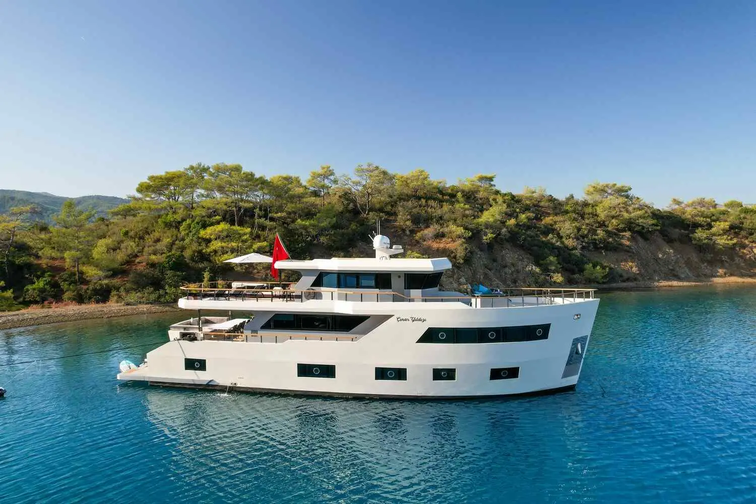 Set sail from Fethiye, Turkey, on the luxurious Çınar Yıldızı Motoryacht. Enjoy comfortable accommodations, gourmet dining, and an array of water activities for an unforgettable experience for up to 11 guests.