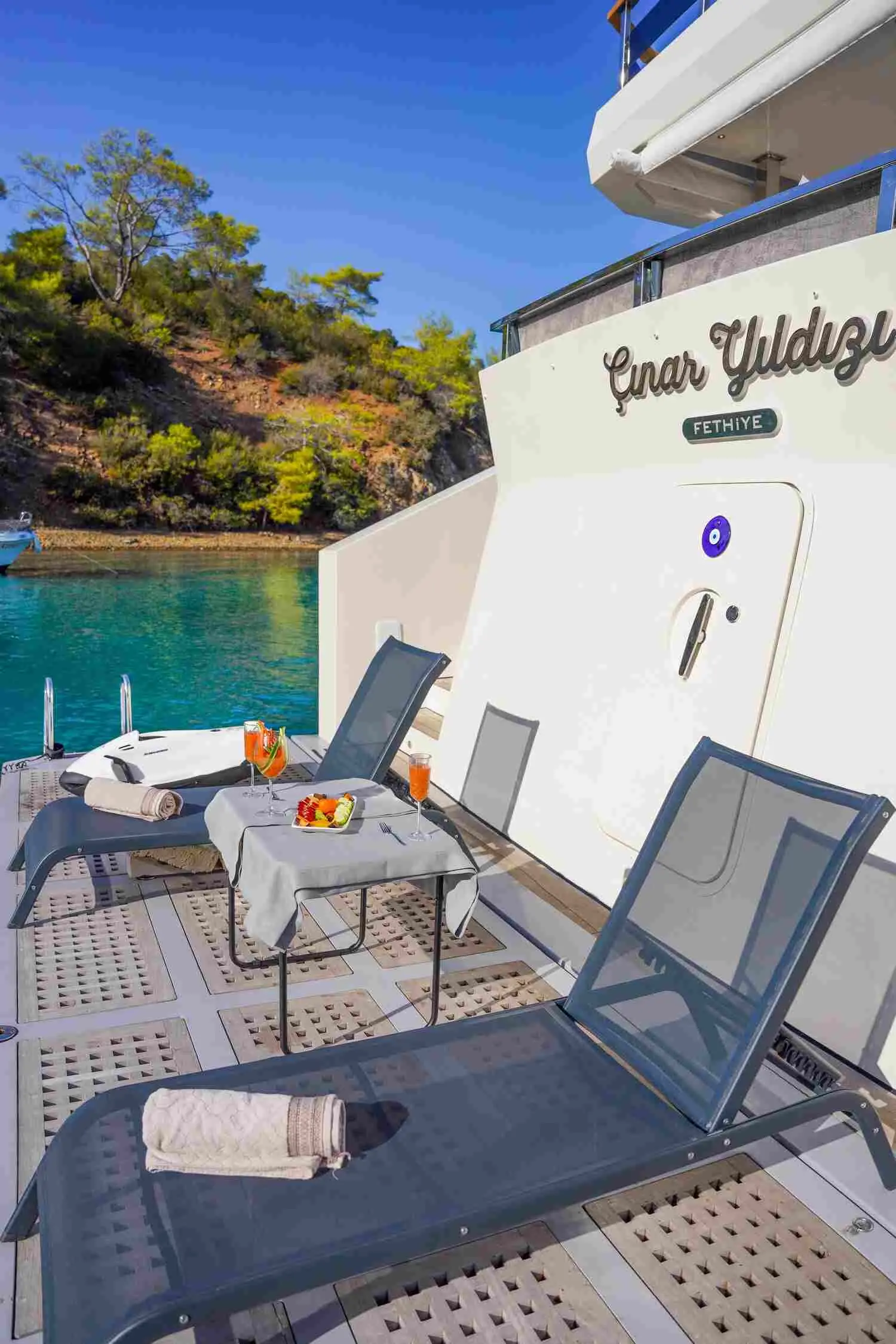 Equipped with advanced navigation technology, Çınar Yıldızı ensures a safe and enjoyable sailing experience. The experienced crew, proficient in the latest maritime safety practices, navigates through the region's breathtaking landscapes, offering guests a seamless journey across the blue waters.