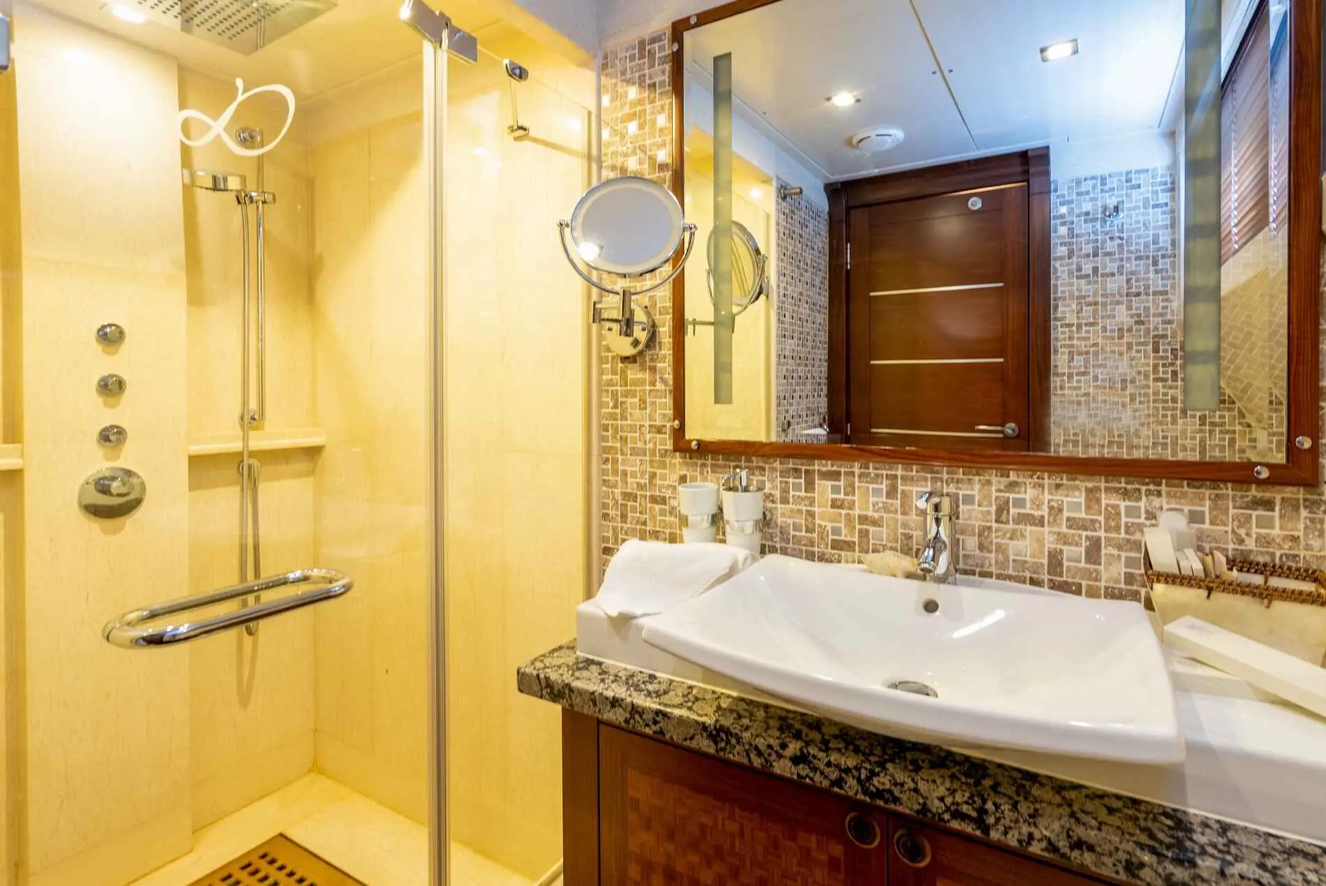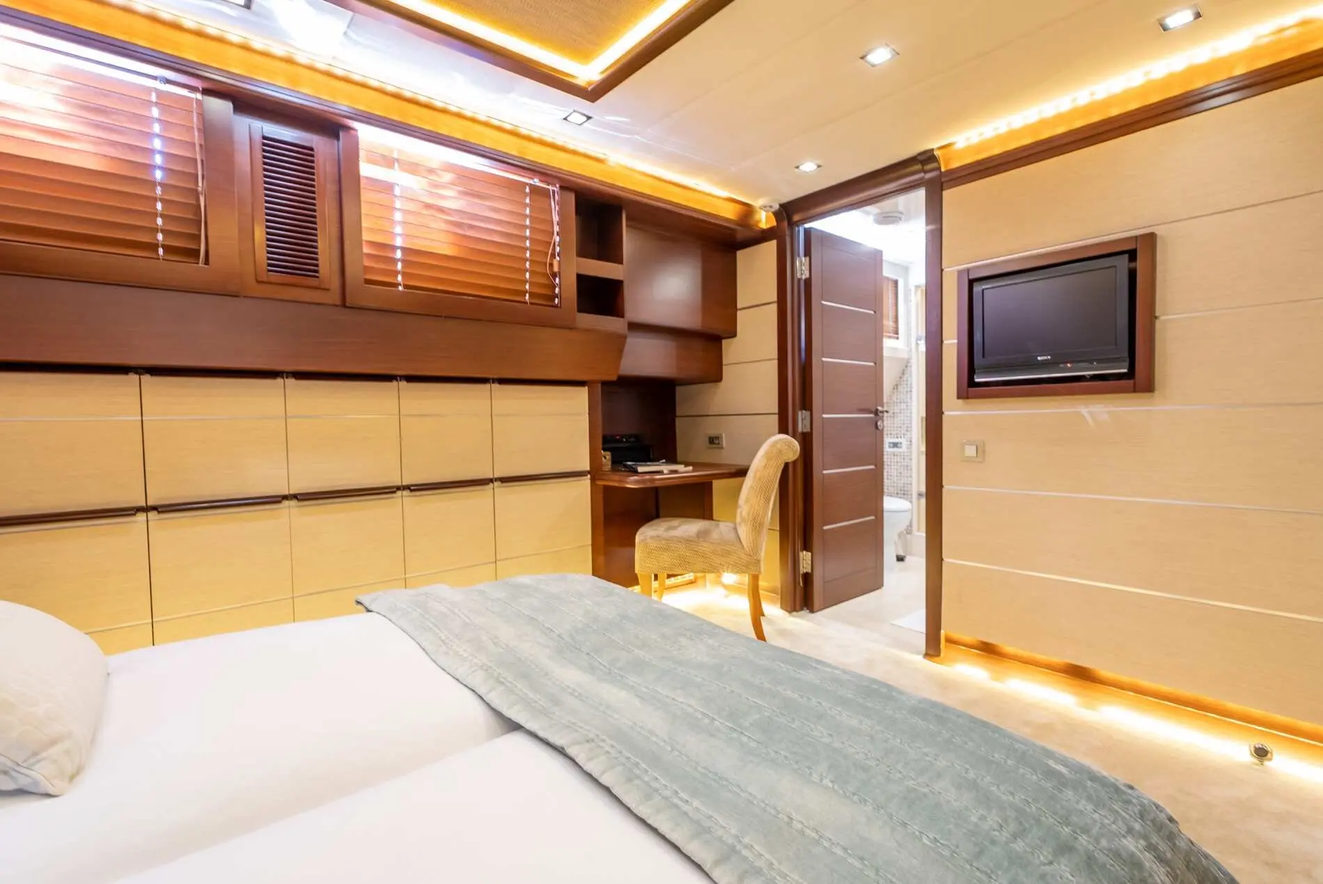 TV, DVD Player in the saloon and each stateroom, TV at the aft deck, WiFi, Music System, Movie and Music Library, Steam bath feature in the shower of Master Cabin, Air Conditioning, Castoldi 17ft 160hp waterjet, Jet Ski, Stand Up Paddle Board, Paddle Bike, Canoe, 2 x Seabob, Water Ski, Mono Ski, Snorkeling & Fishing Gear