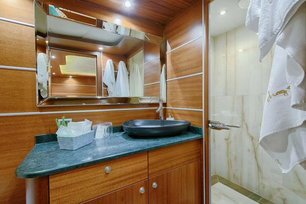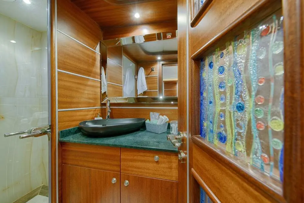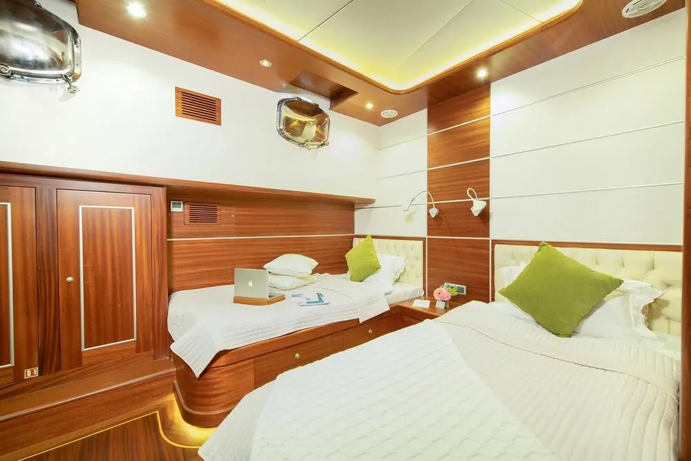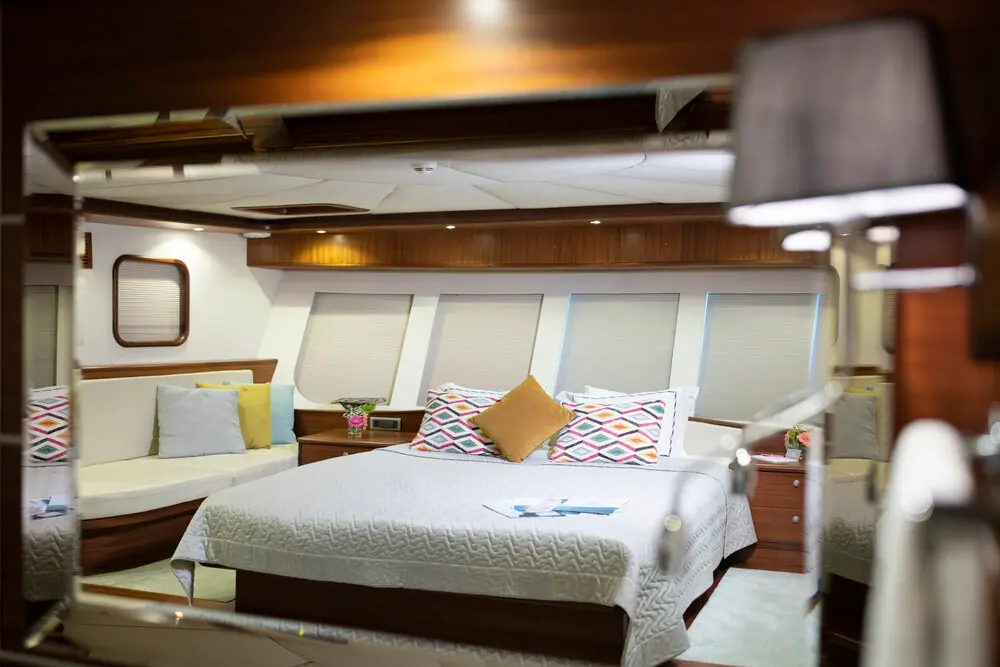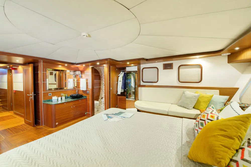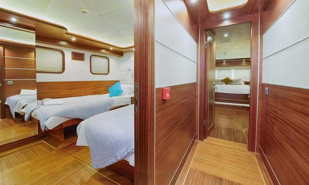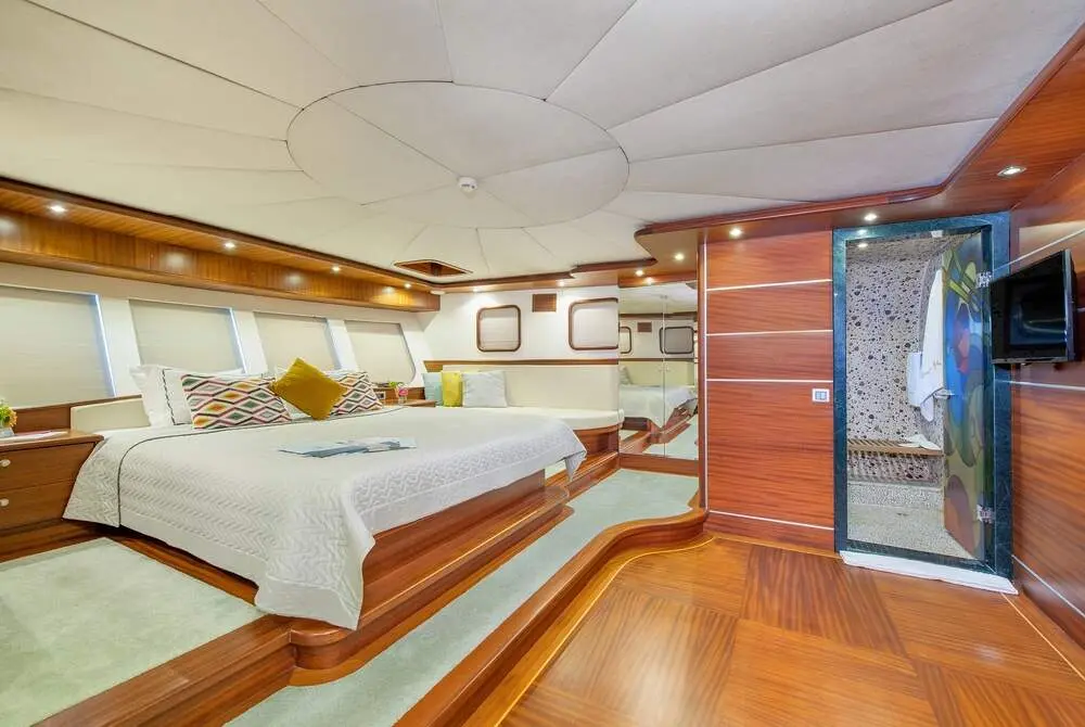 Dragon Fly boasts an exquisite selection of cabins, offering a serene and opulent retreat for up to 10 guests. Each cabin is equipped with modern amenities and en-suite bathrooms, ensuring a stay of unparalleled comfort and elegance. The gulet's spacious design and luxurious furnishings create an ambiance of exclusivity and relaxation.