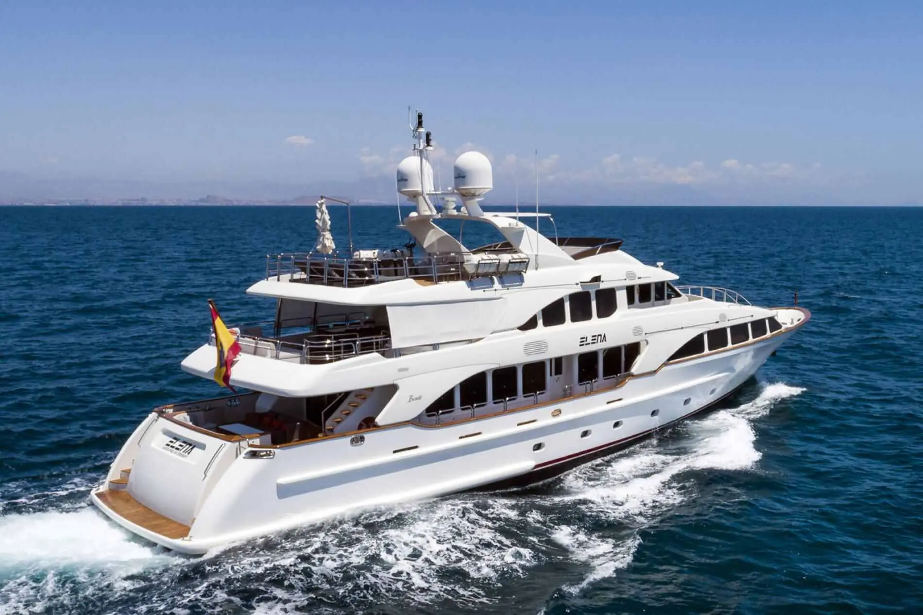 The Motor Yacht Elena Nueve, a stunning 36.57-meter creation by the renowned Benetti shipyard, offers the pinnacle of luxury and elegance for discerning travelers. With a home base in Spain, this majestic yacht is your gateway to the Mediterranean’s breathtaking beauty. Extensively refitted in 2018, Elena Nueve combines timeless sophistication with modern comforts, providing an exceptional charter experience for up to 12 guests.
