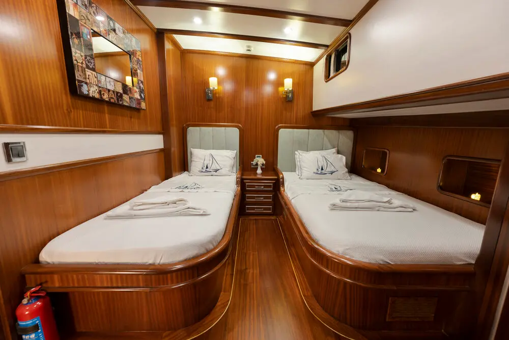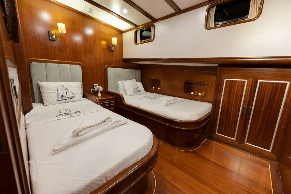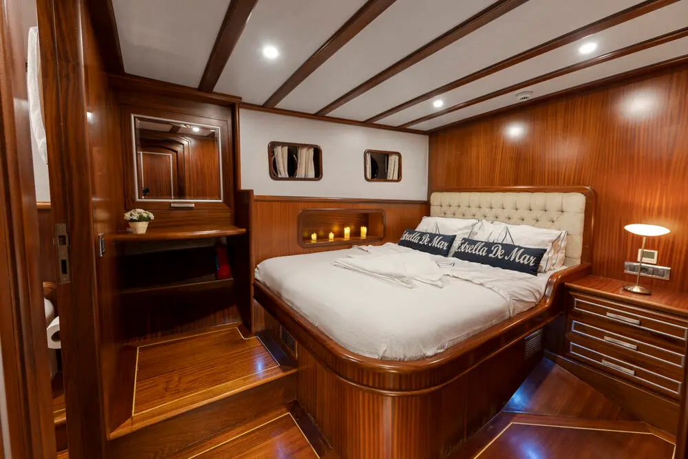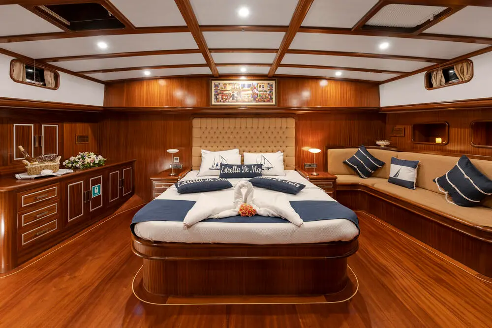Estrella De Mar boasts an exquisite selection of cabins, designed to offer guests a haven of comfort and luxury. Each cabin, equipped with modern amenities and en-suite bathrooms, reflects a commitment to providing a restful and elegant retreat. The gulet's thoughtful design and luxurious furnishings create an ambiance of warmth and exclusivity.