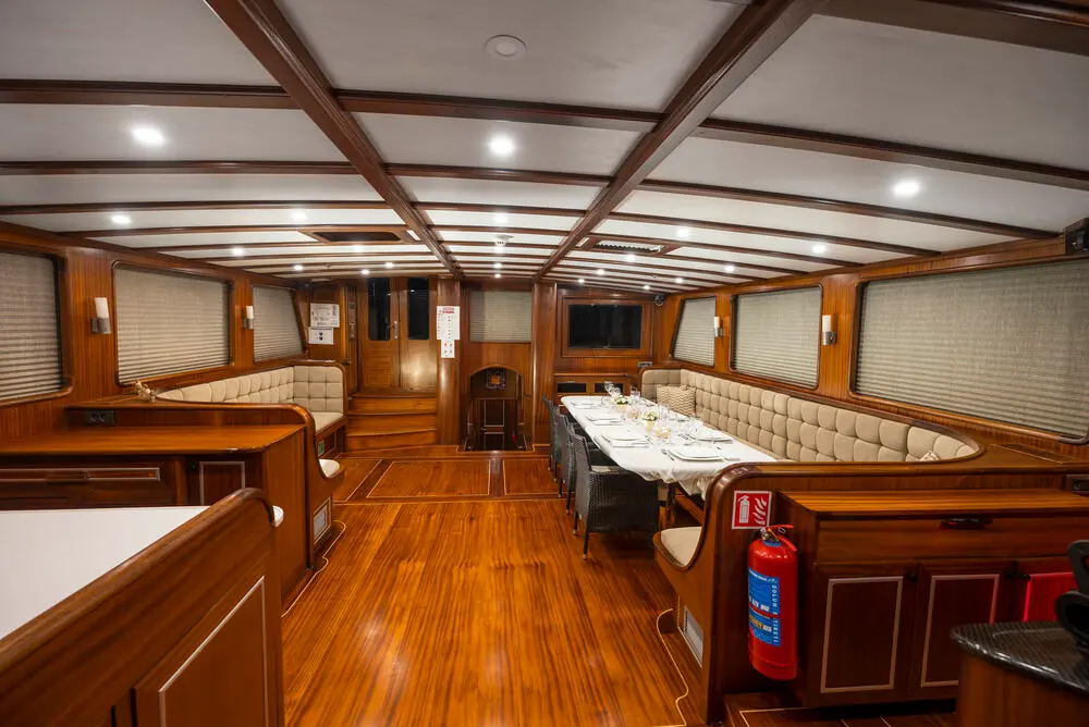 Equipped with advanced navigation technology, Estrella De Mar ensures a safe and enjoyable sailing experience. The experienced crew, proficient in the latest maritime safety practices, navigates through Turkey's breathtaking landscapes, offering guests a seamless journey across the tranquil waters of the Aegean.