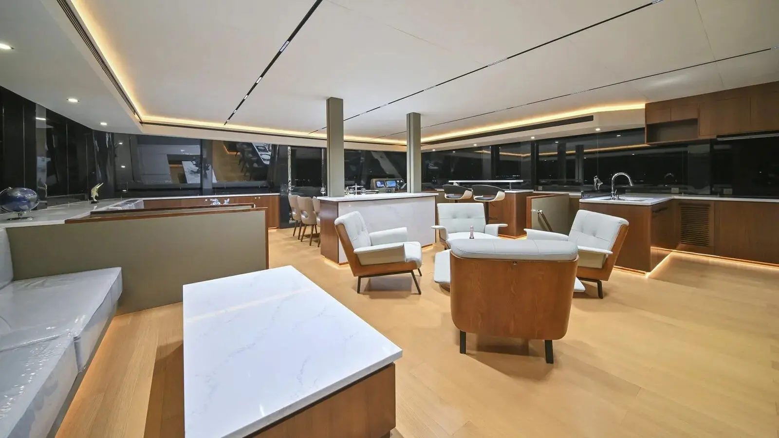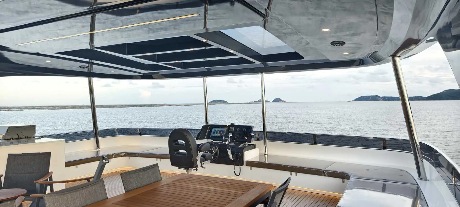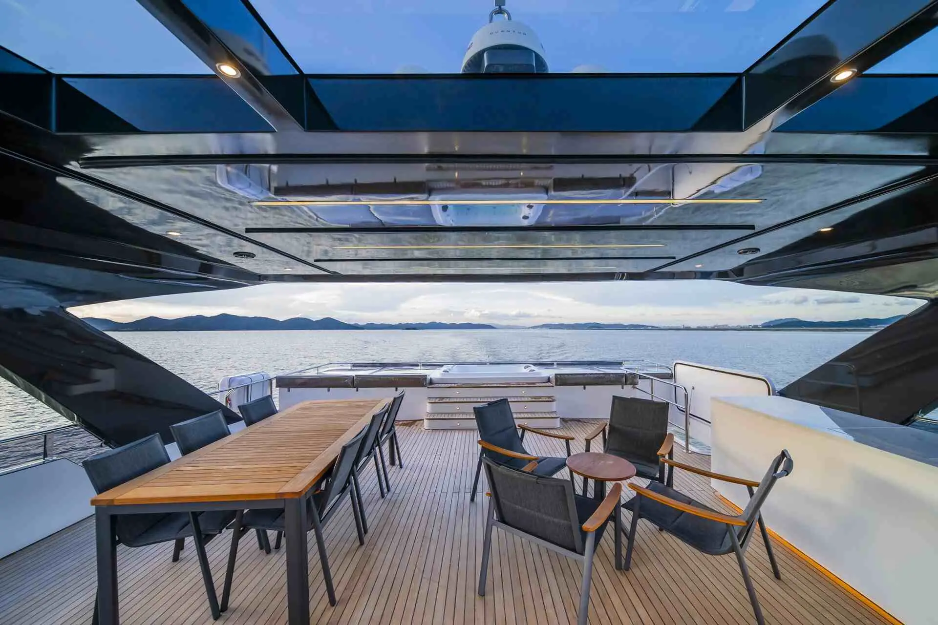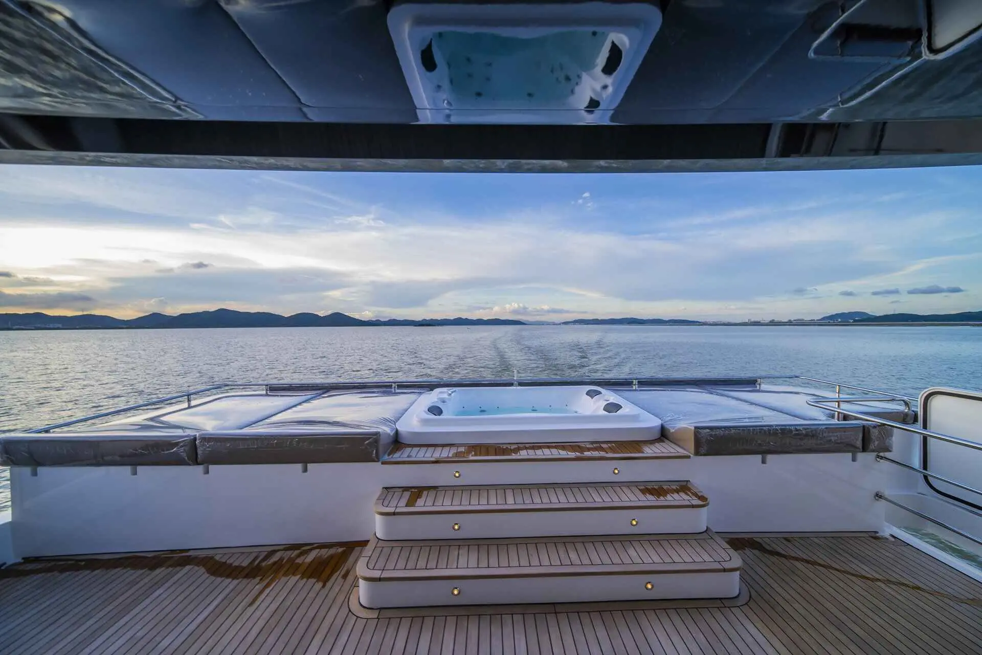 Hydraulic gangway, Hydraulic swimming platform, Upper-Deck Jacuzzi, BBQ on flybridge, Ice maker, Wine cellar, Salon audio video system , Widescreen LED TV 65”, Wifi, Tender HIFEI 3.8M with 60Hp Parsun outboard engine, 2x Seabob, Wakeboard, Towables, Kayak, 2x SUP, Fishing & Snorkeling equipment