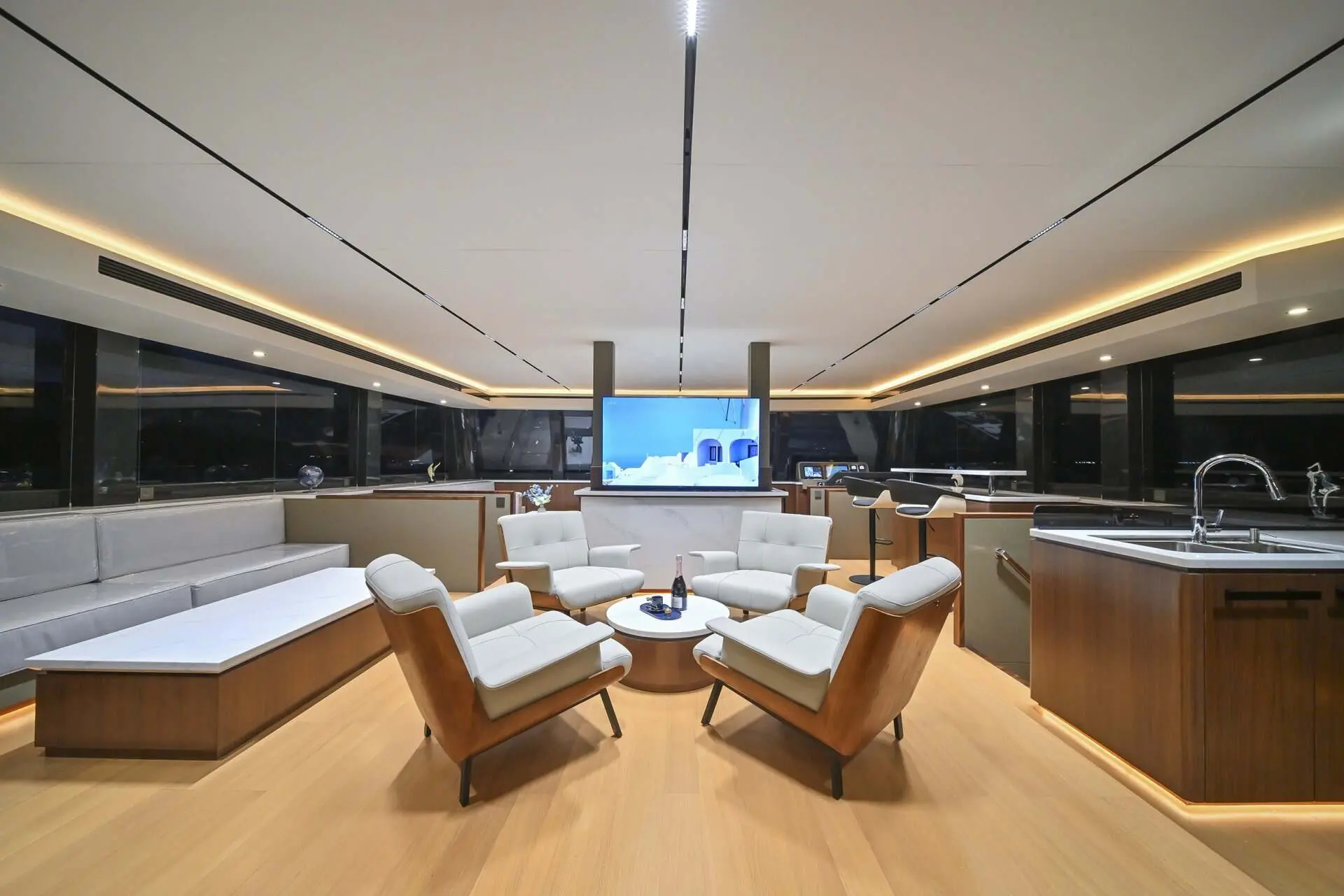 Power Catamaran Evita is the ideal choice for guests seeking modern luxury, performance, and space. With her innovative design and high-end features, she delivers a unique yachting experience that combines speed, stability, and style.