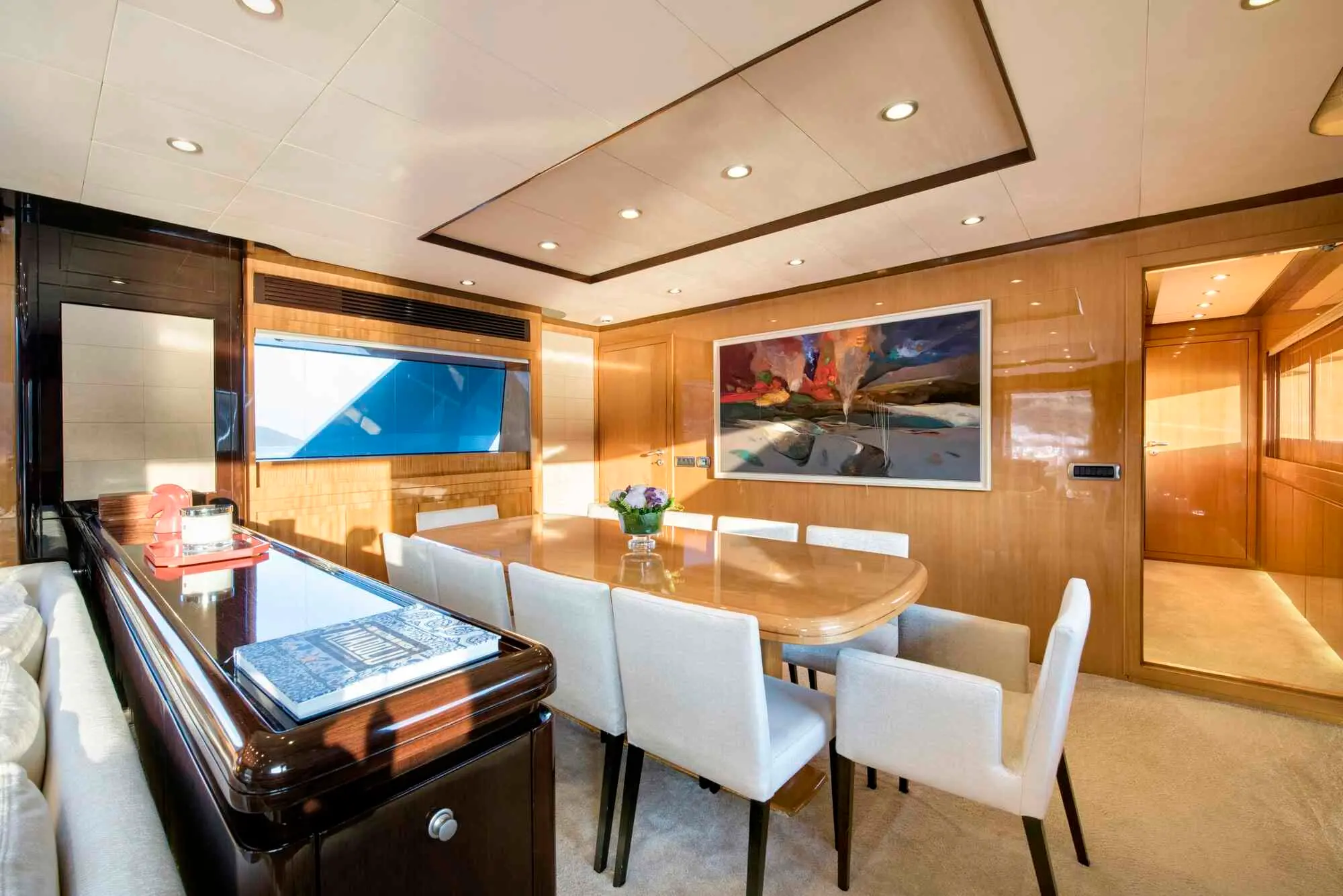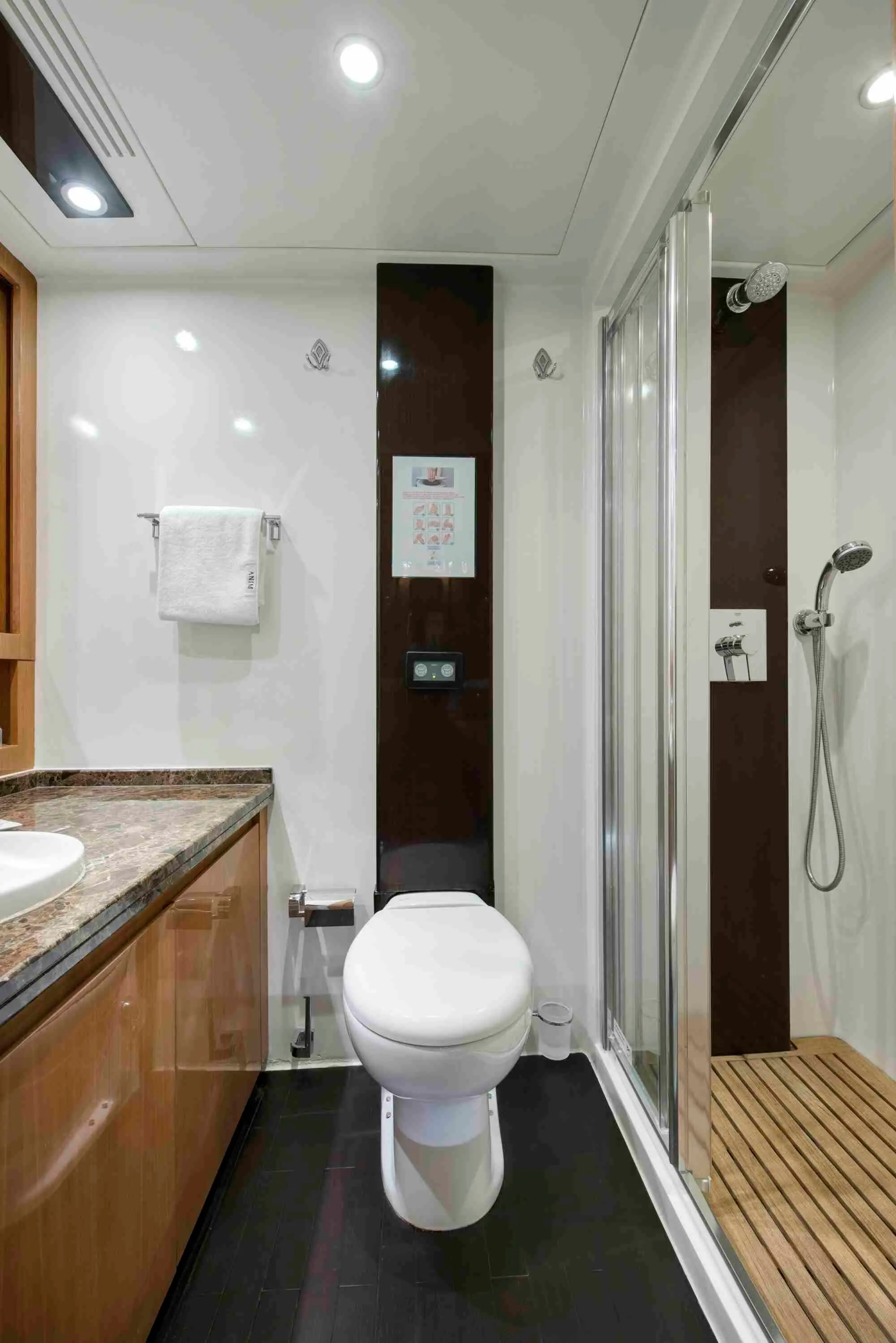 LED TV Surround System with DVD Player in Salon, Bose Music System, LCD TV, DVD Player in All Cabins, Satellite TV, Wi-Fi, Air Conditioning, Sinkable Hydraulic Swim Platform, Electric Bimini Top on Sun Deck4.8 m tender with 90 hp outboard, Jetski, Wakeboard, Water Ski, Seabob, E-foil, Snorkelling Equipment, Basic Fishing Equipment, Beach club inflatable sea pool