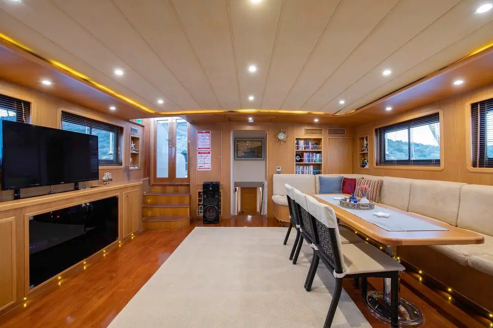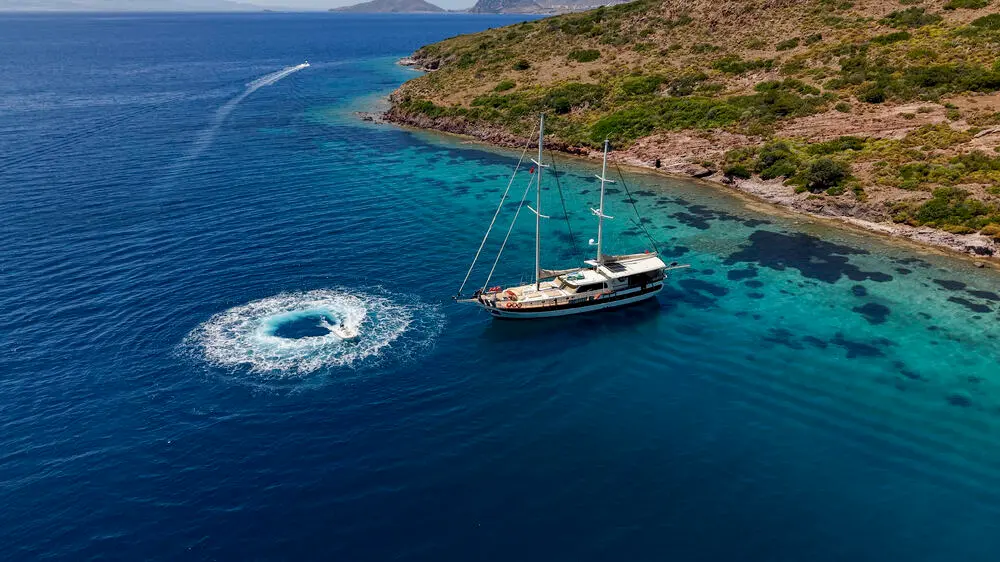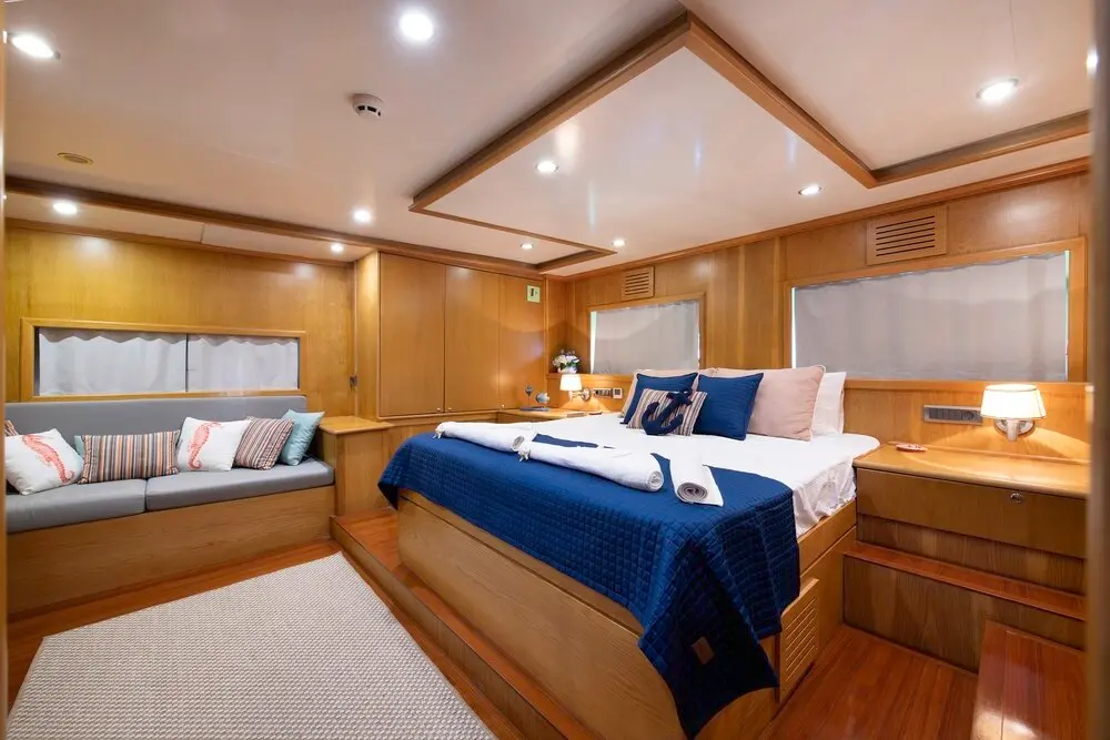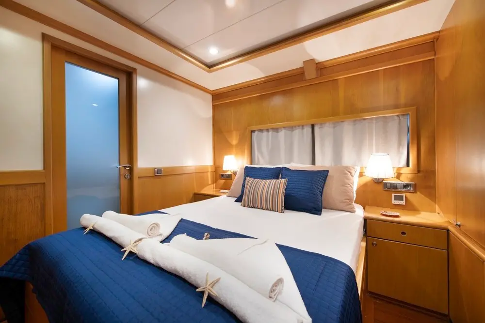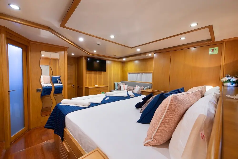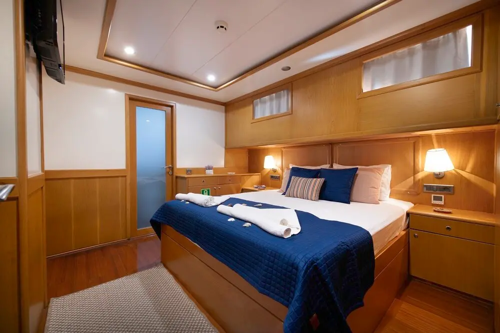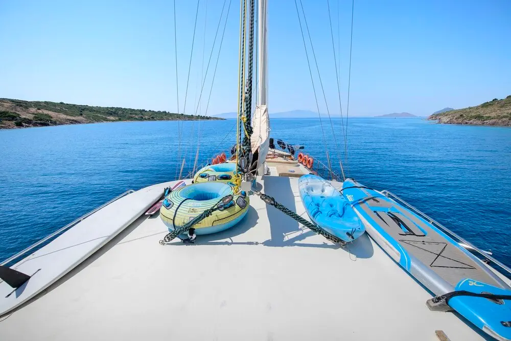 The gulet is equipped with an array of entertainment and leisure facilities, including jet skis, paddle boards, wakeboards, and more, ensuring that every moment spent aboard is filled with joy and excitement.