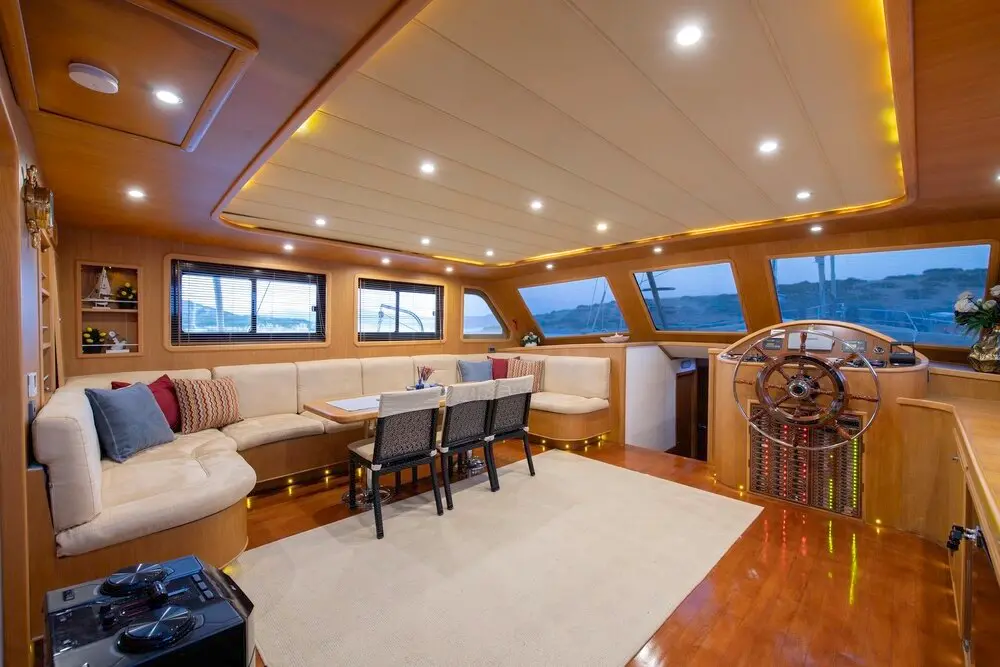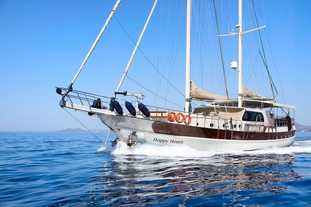 Cruising at a comfortable speed of 9 knots, "Happy Hours" ensures a smooth journey through the turquoise embrace of the Aegean Sea. The gulet's generous beam offers ample space for relaxation and entertainment, setting the stage for an unparalleled sailing experience.
