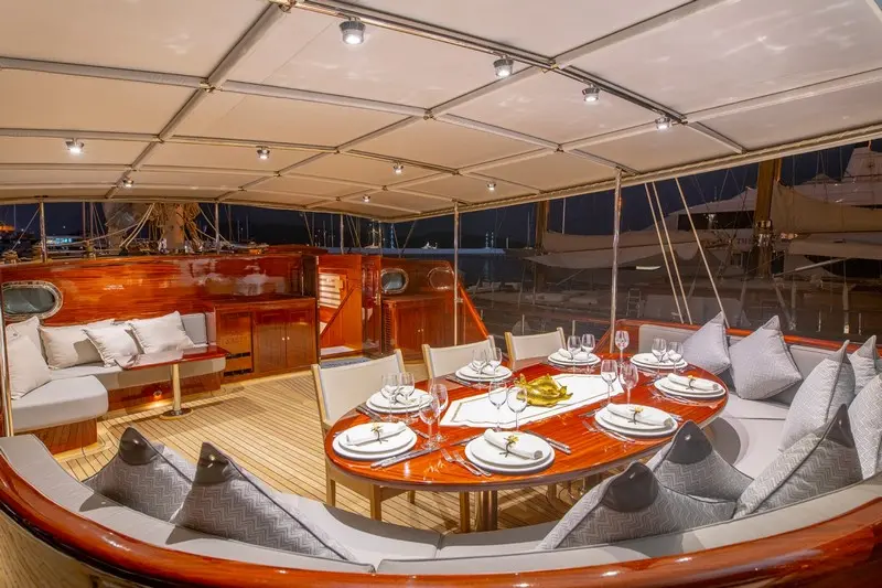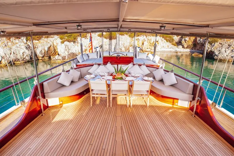 The culinary experience on Hic Salta is a highlight, with a menu that reflects the rich flavors of the Mediterranean. Guests can savor exquisite dishes prepared by the onboard chef, ranging from fresh seafood to gourmet international cuisine, all while taking in the breathtaking views.