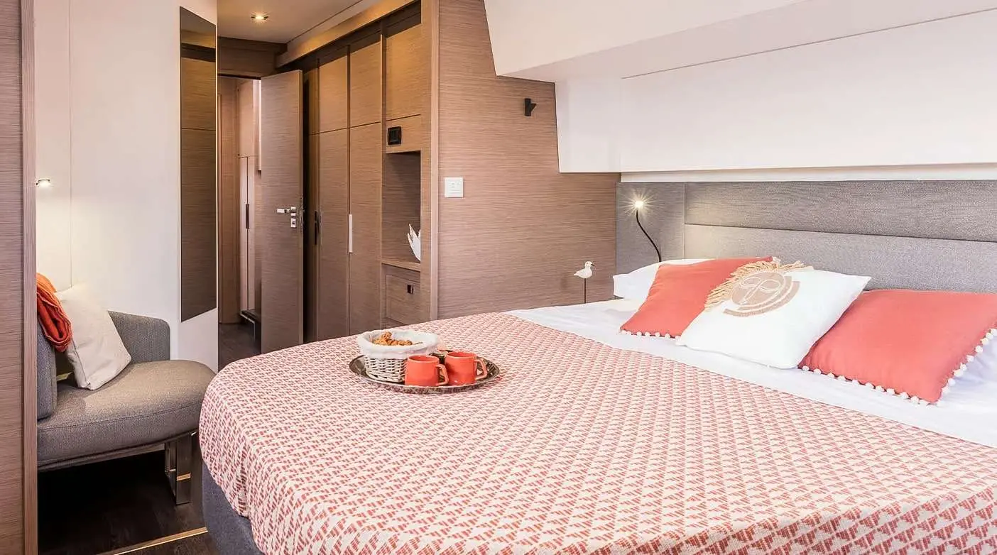 Equipped with advanced sailing technology, the Aura 51 Kebisiks offers a perfect blend of power and stability. The two powerful Volvo 60 HP engines, combined with performance sailing features, ensure smooth and effortless navigation through Greece’s stunning coastlines. With a professional 2-member crew, guests can enjoy a hassle-free, fully catered sailing adventure, whether they’re island hopping or relaxing onboard.