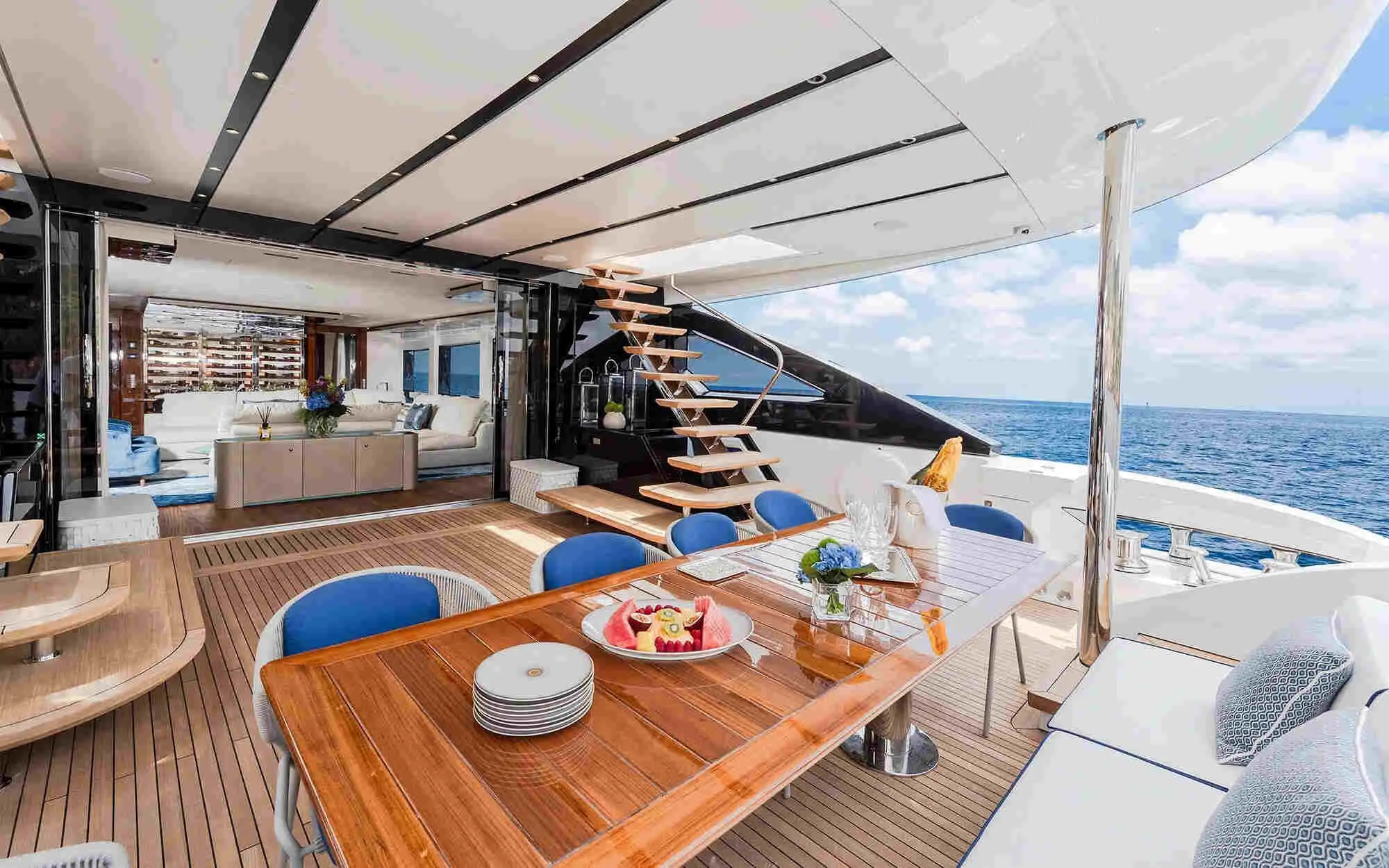 Lafayette’s interior is a masterpiece of modern design, featuring luxurious materials and finishes throughout. The layout is designed to maximize space and comfort, with each cabin offering ample storage, plush bedding, and elegant decor. The yacht’s exterior is equally impressive, with spacious decks that include lounging areas, a dining space, and the aforementioned pool and jacuzzi. The design also allows for customization based on guest preferences, making it easy to tailor the experience to your specific needs.