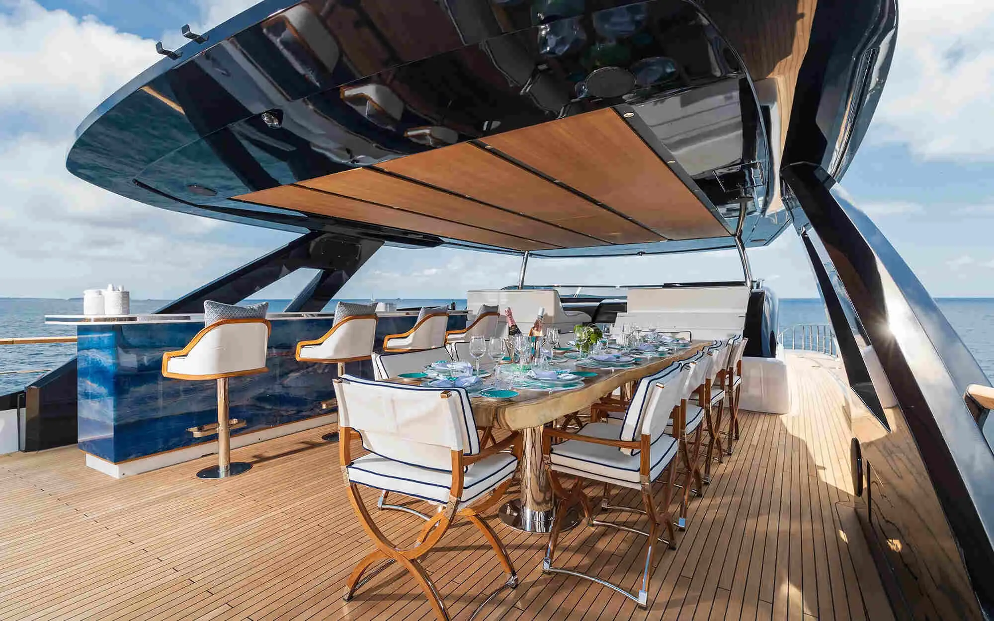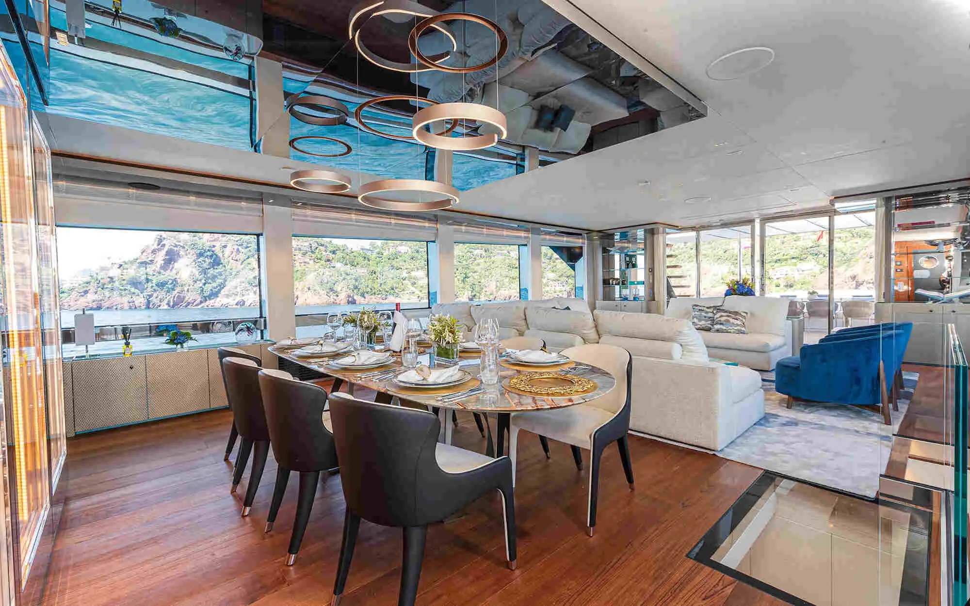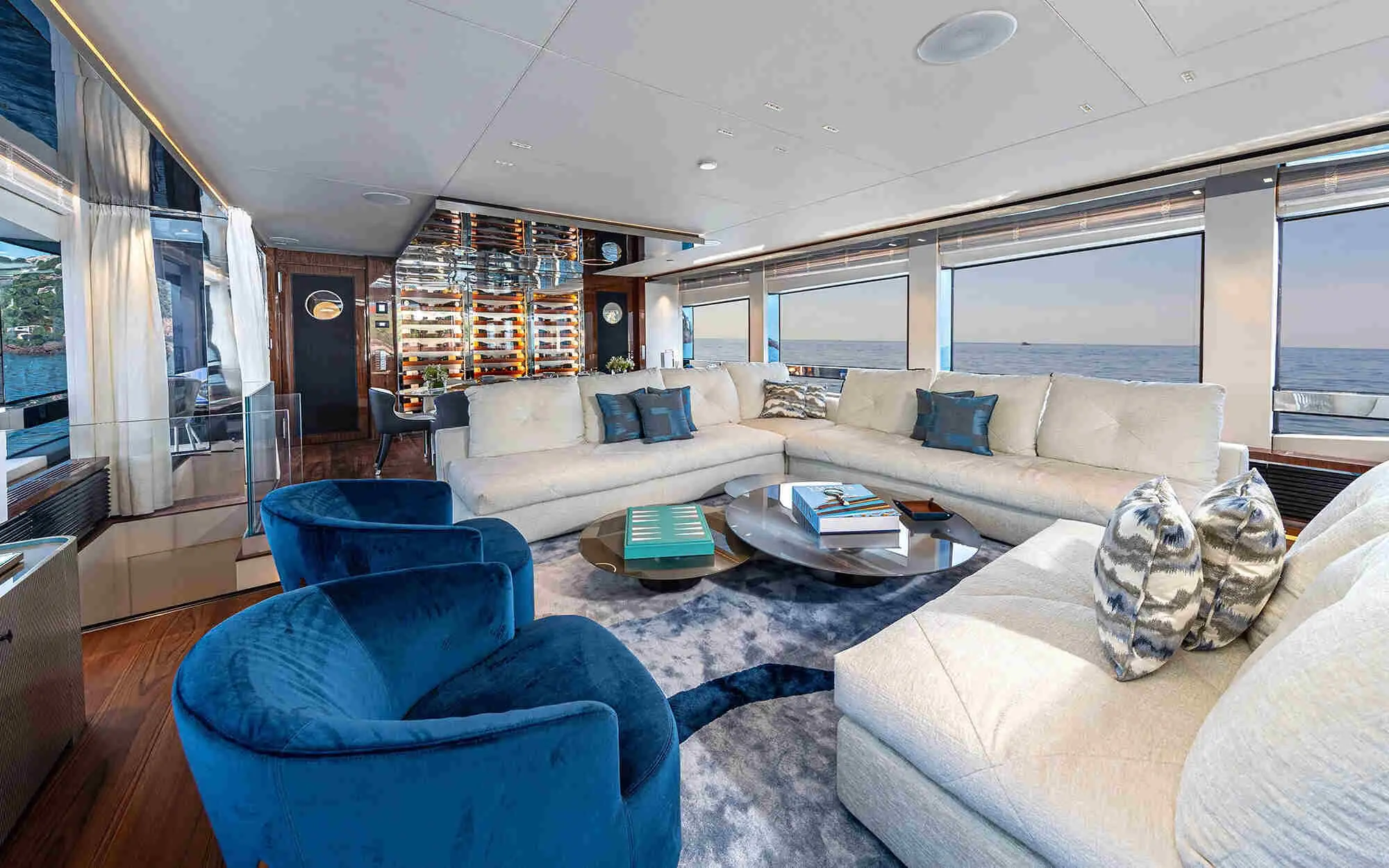 Lafayette is not just about cruising; it’s about experiencing luxury and leisure at its finest. The yacht is equipped with a GYM and exercise equipment, allowing guests to maintain their fitness routine while at sea. A swimming pool and deck jacuzzi offer relaxation options, while onboard Wi-Fi keeps guests connected. The yacht also includes a Williams 5.05m semi-rigid tender with an inboard engine, perfect for short trips to shore or exploring nearby coves.