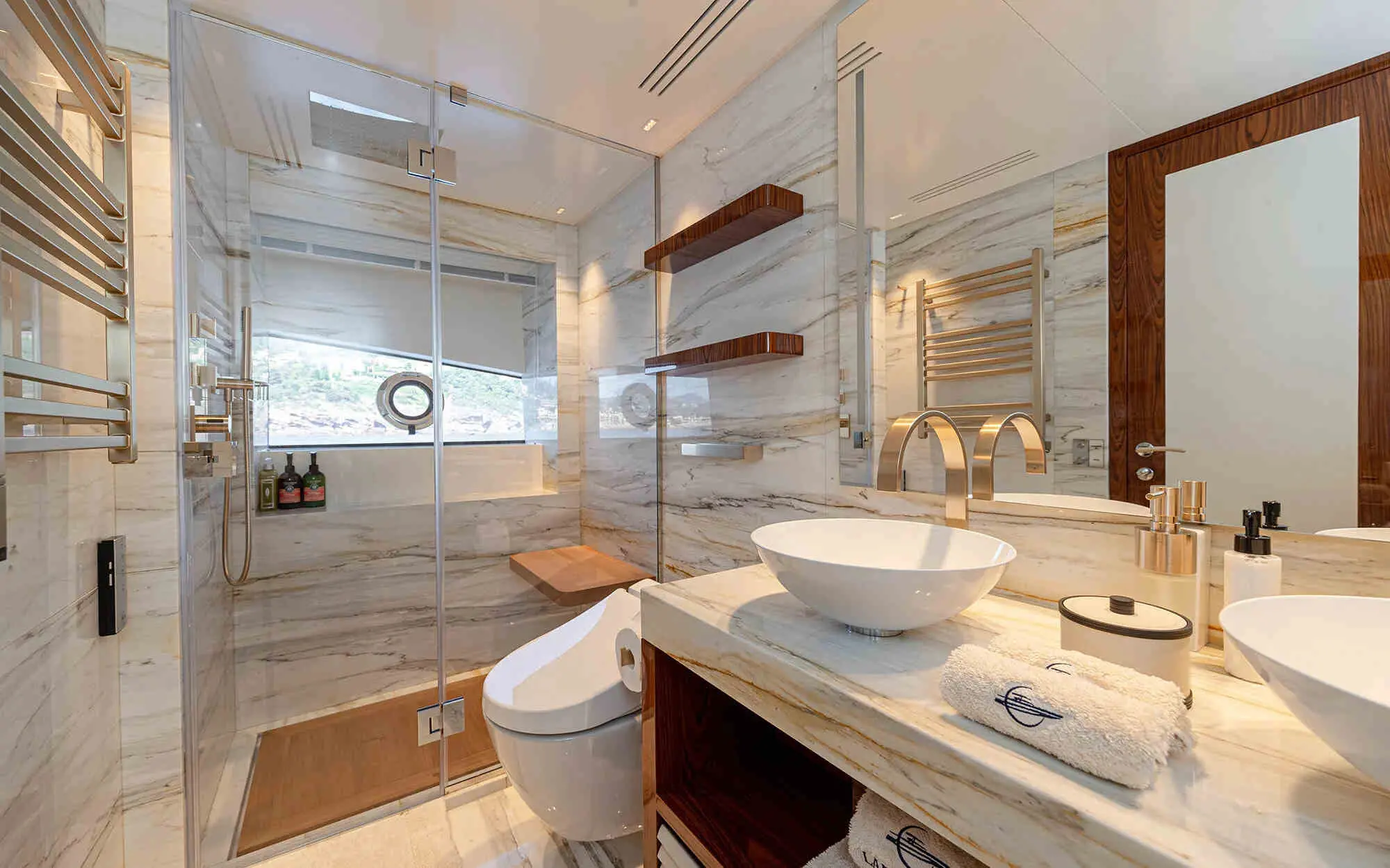 Lafayette can comfortably accommodate a diverse group of guests with its well-appointed cabins. The yacht features three double cabins, two convertible cabins, and two twin cabins, providing flexibility for various sleeping arrangements. Each cabin is equipped with en-suite bathrooms, ensuring privacy and convenience for all guests. The presence of air conditioning throughout the yacht guarantees a comfortable environment, regardless of the weather outside.