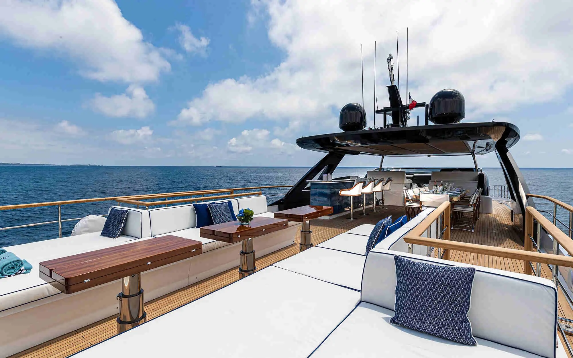 At the heart of Lafayette's performance are its four powerful Volvo Penta engines, each delivering 1,000 HP. This configuration allows the yacht to achieve a cruising speed of 18 knots, providing a smooth and efficient ride across the Mediterranean. The advanced engine setup not only ensures high performance but also optimizes fuel efficiency, making it an eco-conscious choice for long-distance cruising. Navigation systems, while not specified, are expected to include state-of-the-art equipment to ensure safe and precise travel.