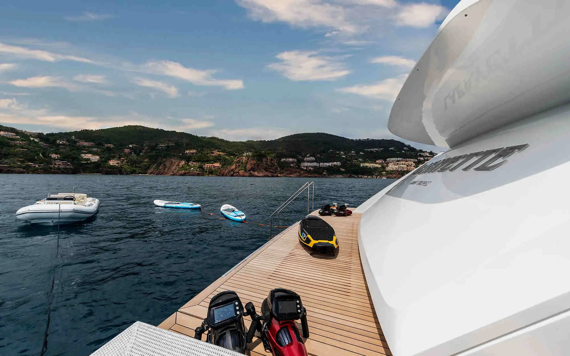 For the more adventurous guests, Lafayette offers an array of water sports equipment. This includes two inflatable paddle boards, four Sublu underwater hand-held scooters, and an electric jet surf. Water skiing, monoskiing, and wakeboarding are all possible with the available equipment. These activities are sure to provide hours of fun for guests of all ages, enhancing the overall yachting experience.