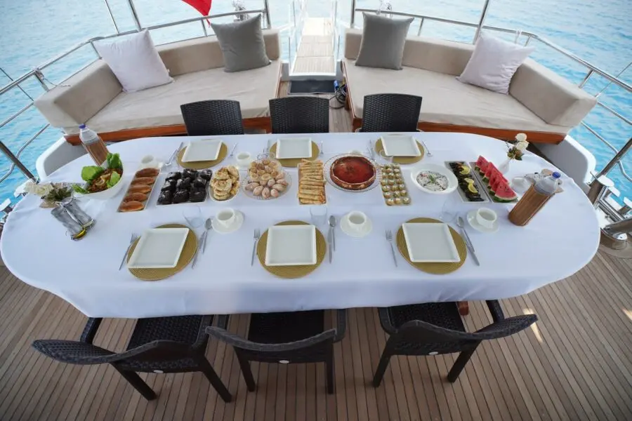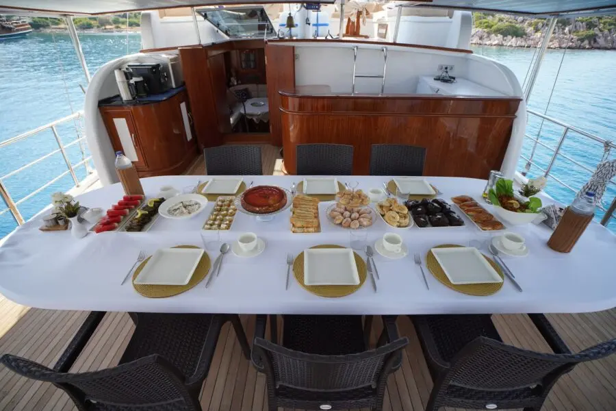 Dining on Lavinia is a delight, with a focus on Mediterranean cuisine that highlights fresh, local ingredients. The onboard chef can accommodate special dietary needs, ensuring every meal is not only delicious but also personalized to guest preferences.