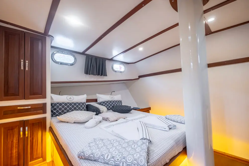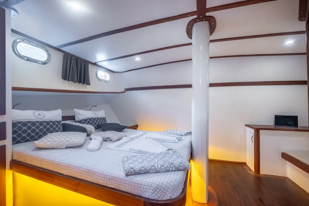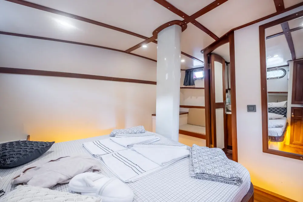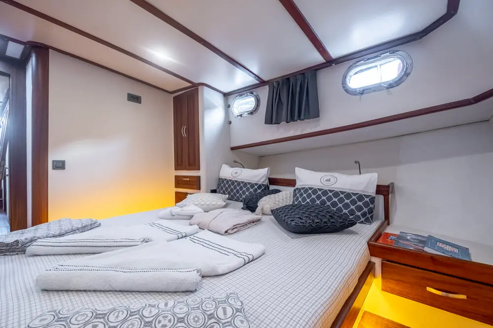 Gulet Leylalı features 5 well-appointed cabins—1 Master and 4 Double, each with a private bathroom, toilet, and air conditioning. Whether you're traveling with family or friends, this yacht provides a cozy and private retreat.