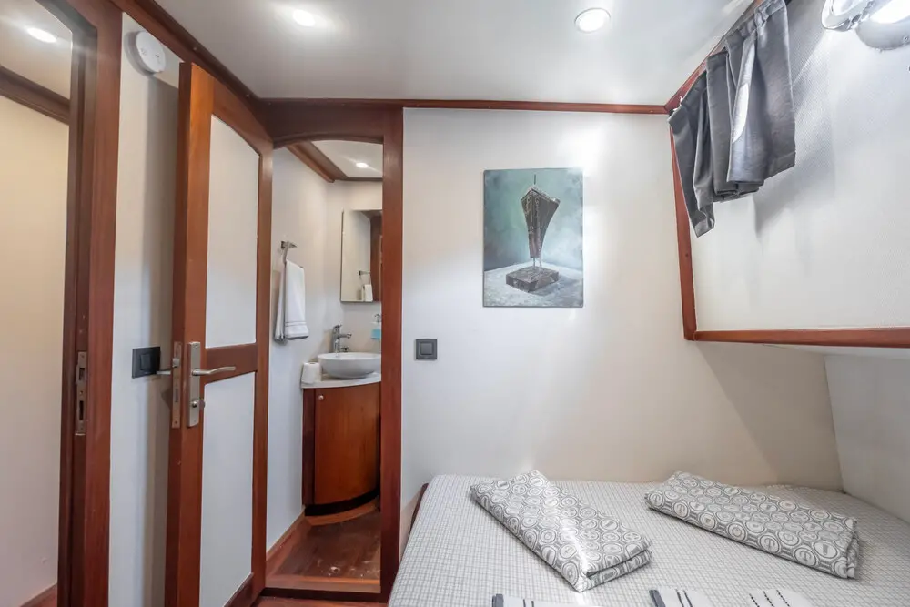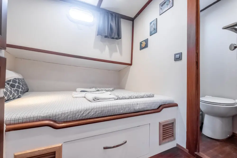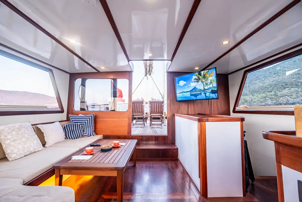 Enjoy TV in the saloon, a premium music system, and Wi-Fi throughout your stay. The gulet is also equipped with air conditioning in all cabins, ensuring comfort even on warm summer nights.