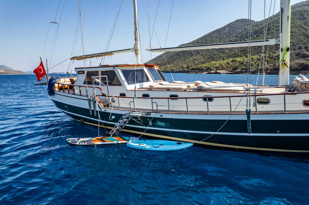 For adventure lovers, Gulet Leylalı offers. With a 360 HP engine, two powerful Onan generators (22.5 + 27.5 kWa), and a dedicated 3-person crew, Gulet Leylalı ensures a seamless and enjoyable journey across the stunning Aegean waters.