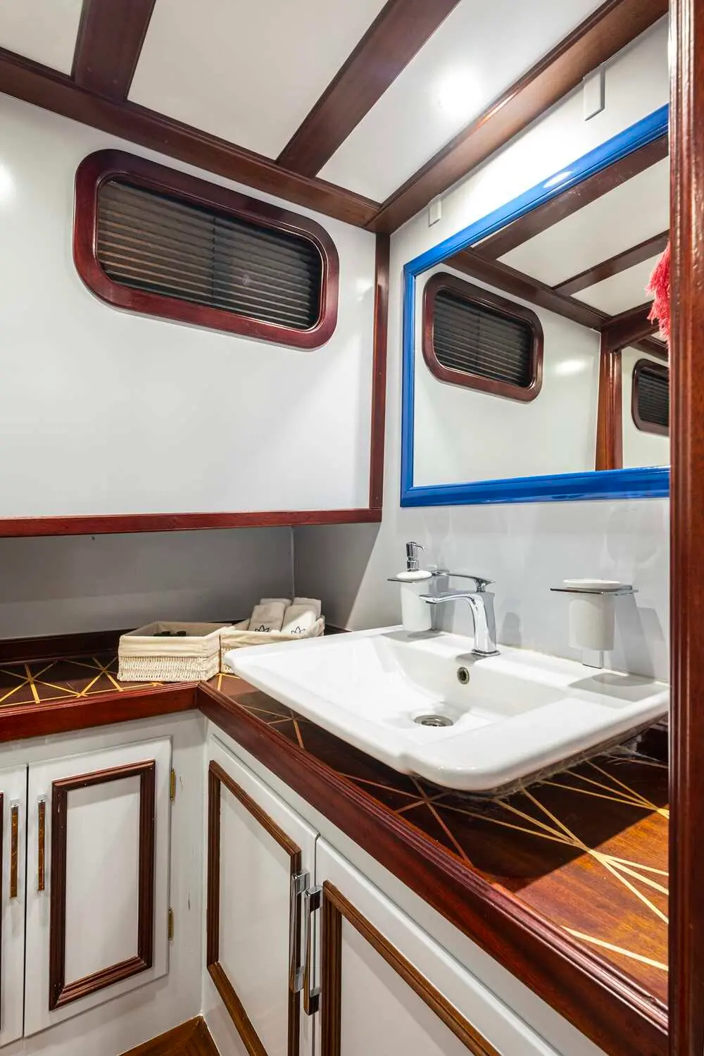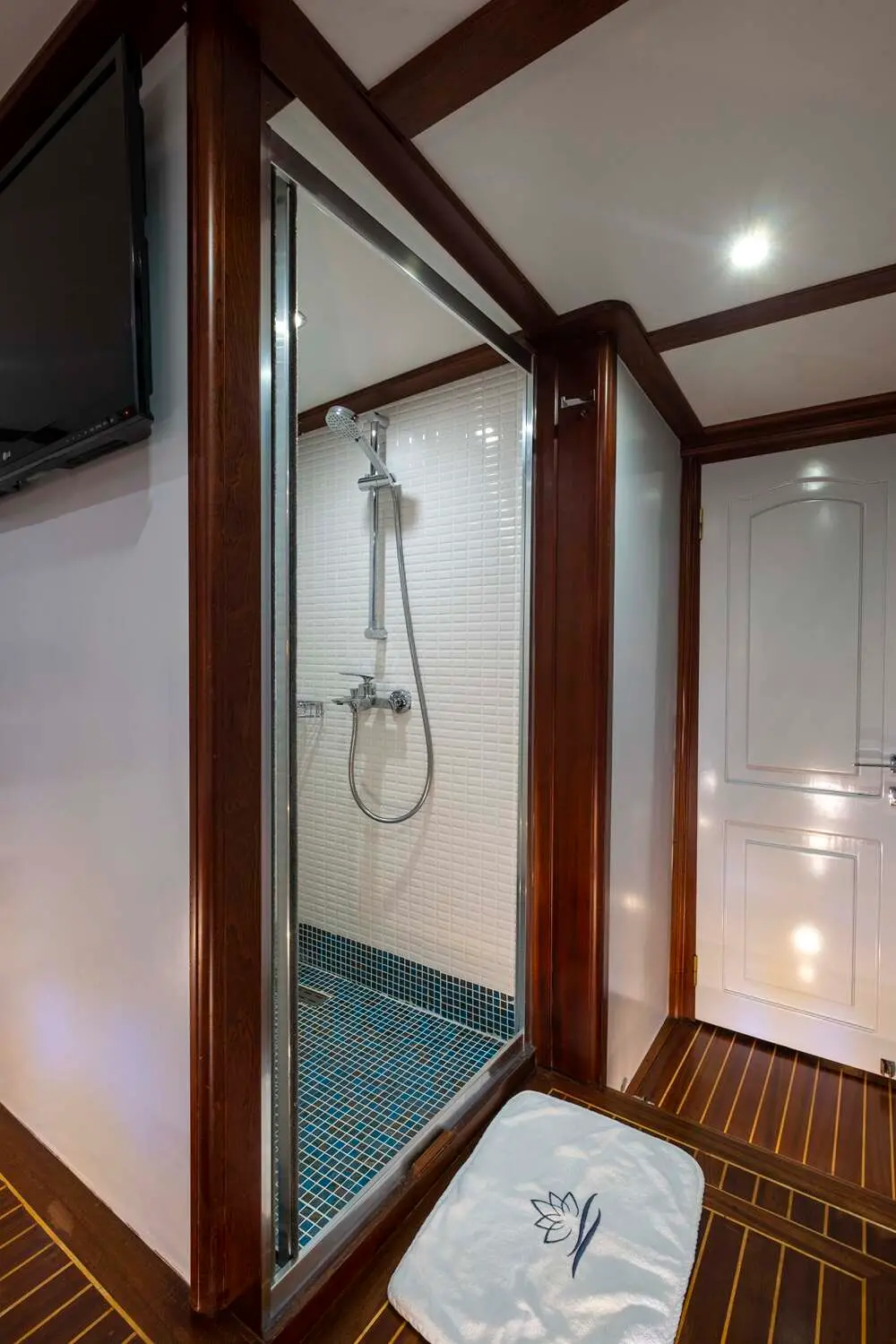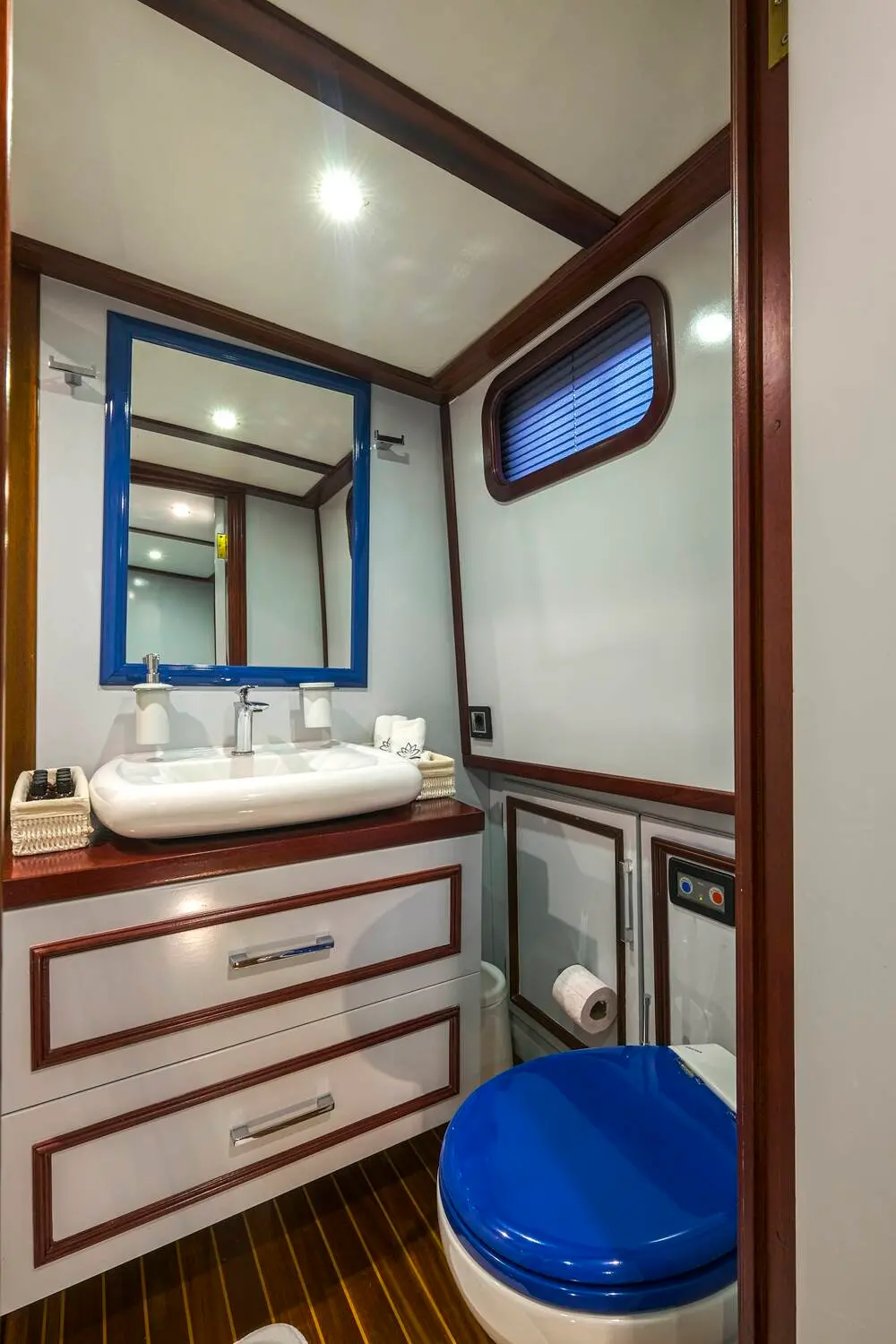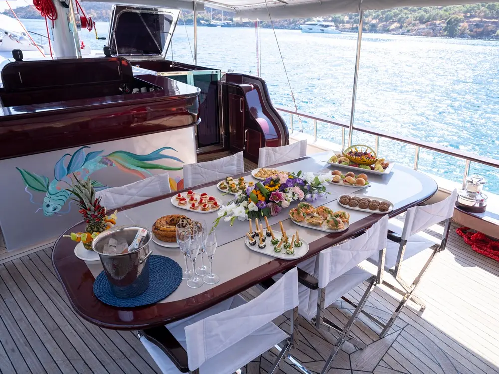 The interior of the Gulet Lotus is designed with comfort and practicality in mind. Its wooden craftsmanship highlights traditional Turkish gulet aesthetics while maintaining a luxurious ambiance.