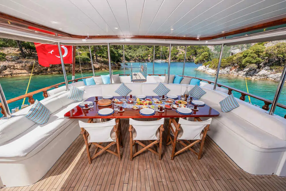 Equipped with advanced navigational tools, including VHF radio, Luca Del Mare ensures safe and efficient travel across the Mediterranean. The crew's expertise in navigation and safety provides peace of mind for guests as they explore the stunning landscapes and waters of Turkey.