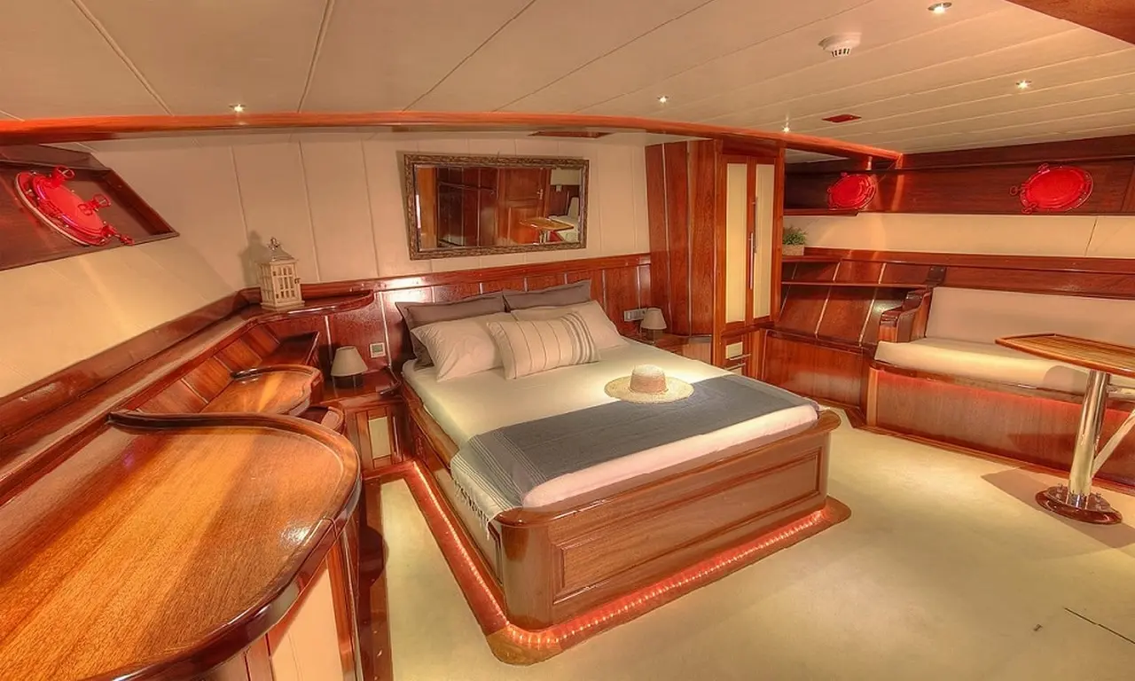 Nautilus features two master suites and three double cabins, each designed for comfort and privacy with en-suite shower boxes, electric toilets, and air conditioning. The gulet's luxurious amenities ensure a relaxing and memorable journey for all guests.