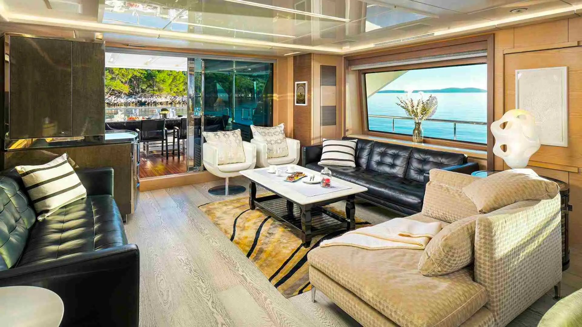 The interior of Ocean Drive showcases refined aesthetics, with luxurious furnishings and state-of-the-art facilities inviting relaxation and entertainment. The exterior decks offer breathtaking views, dining areas, and sunbathing spots, perfect for experiencing the beauty of the Croatian coastline.